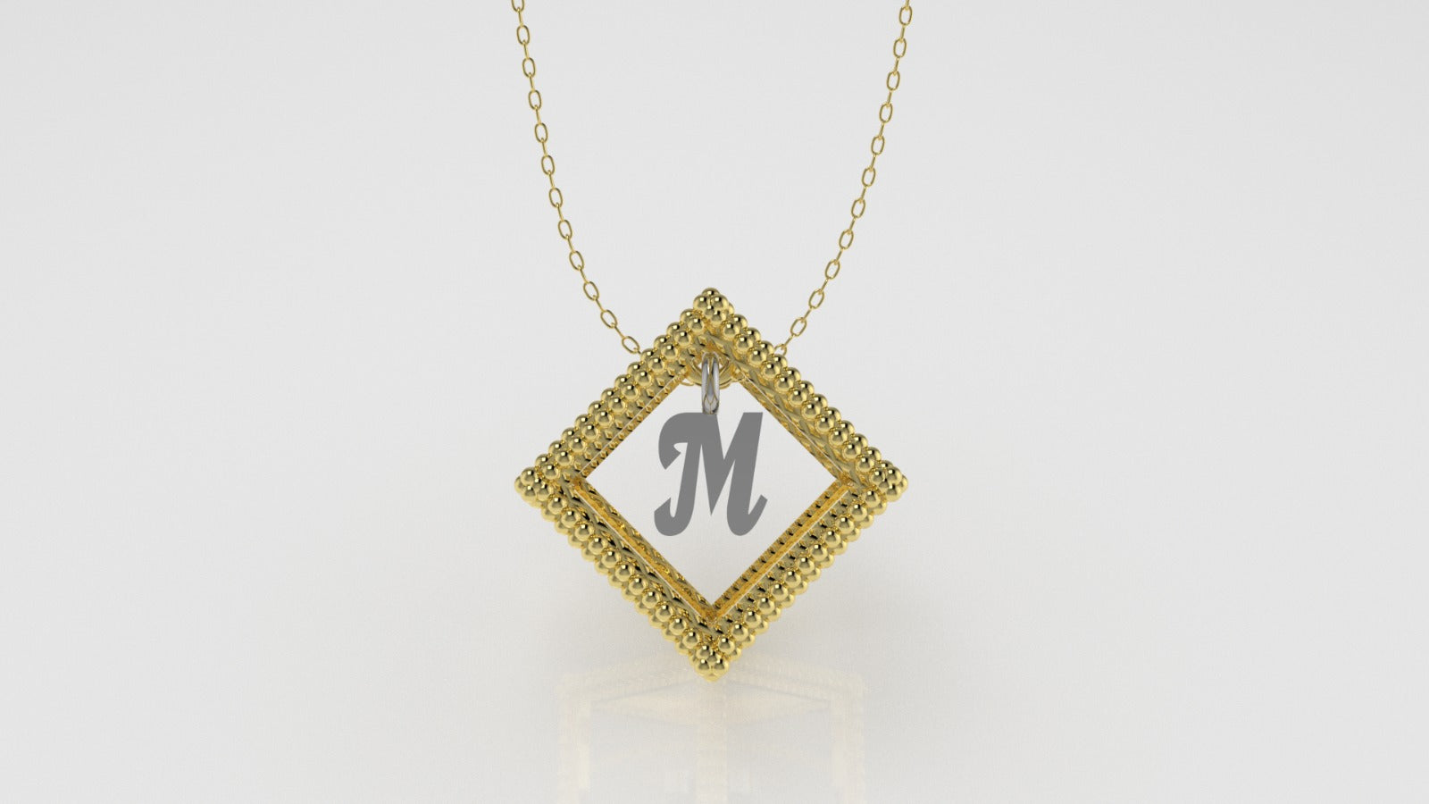 14K Customizable Initial Pendant, Filigree, Only Pendant, Cube Style, with custom letter