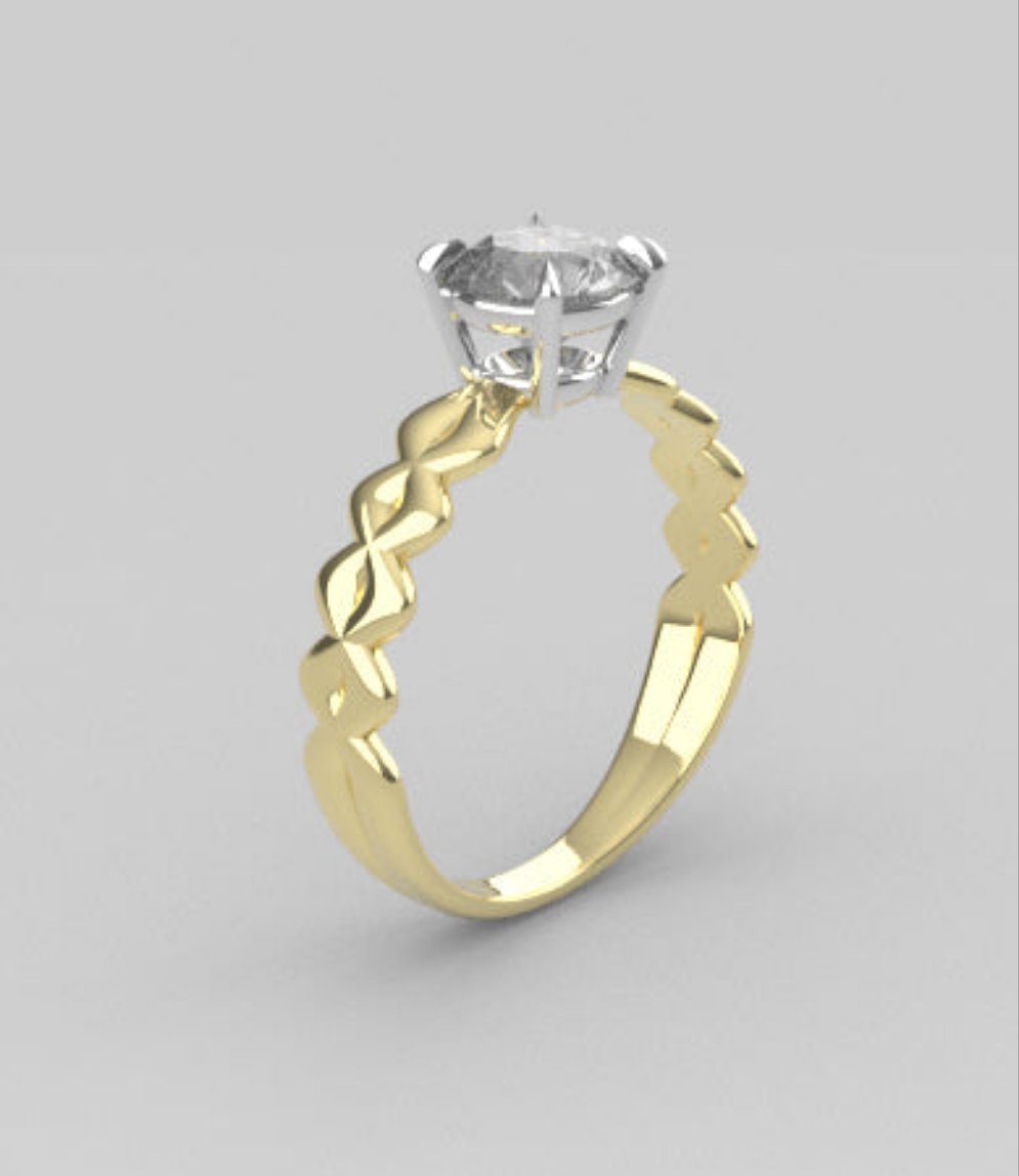 Gold engagement ring with 1.00 ct Diamond VS1, stt prongs, band twisted