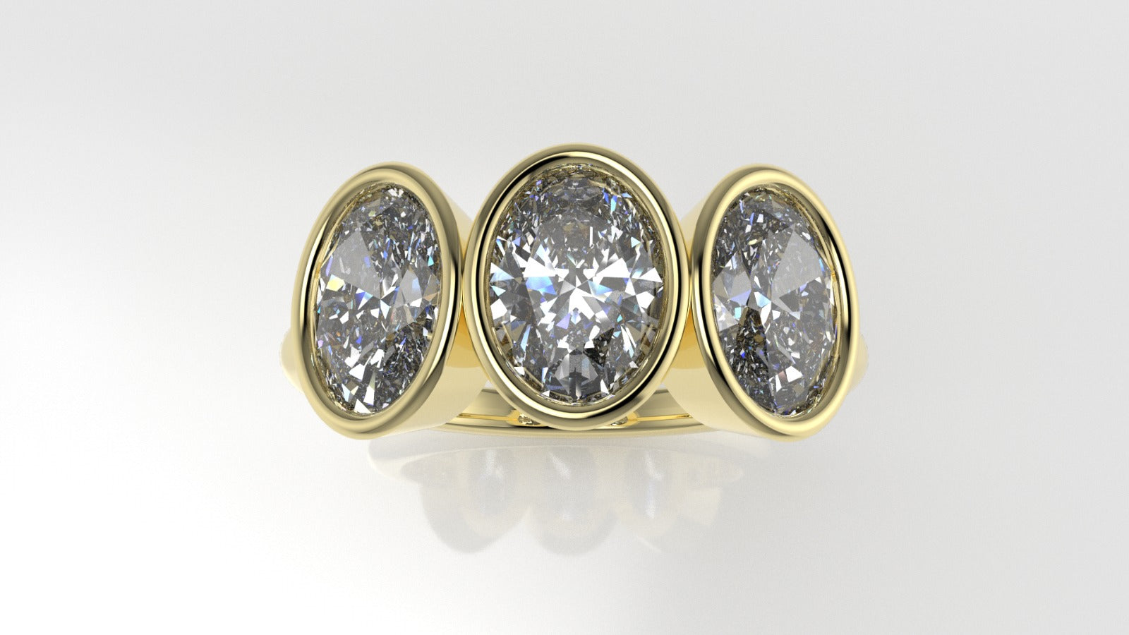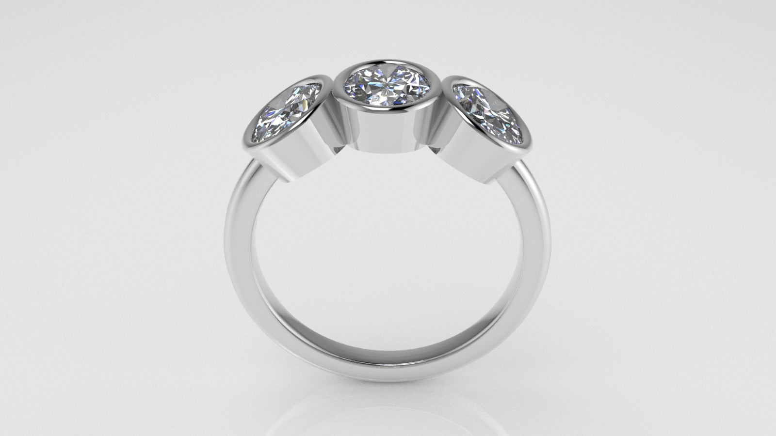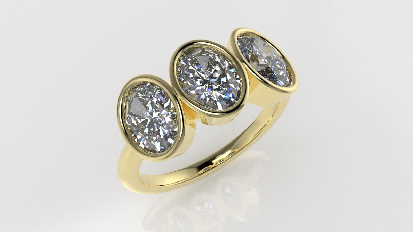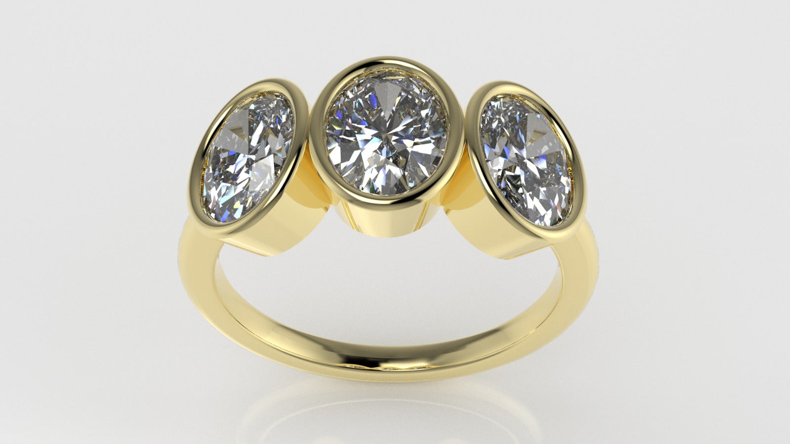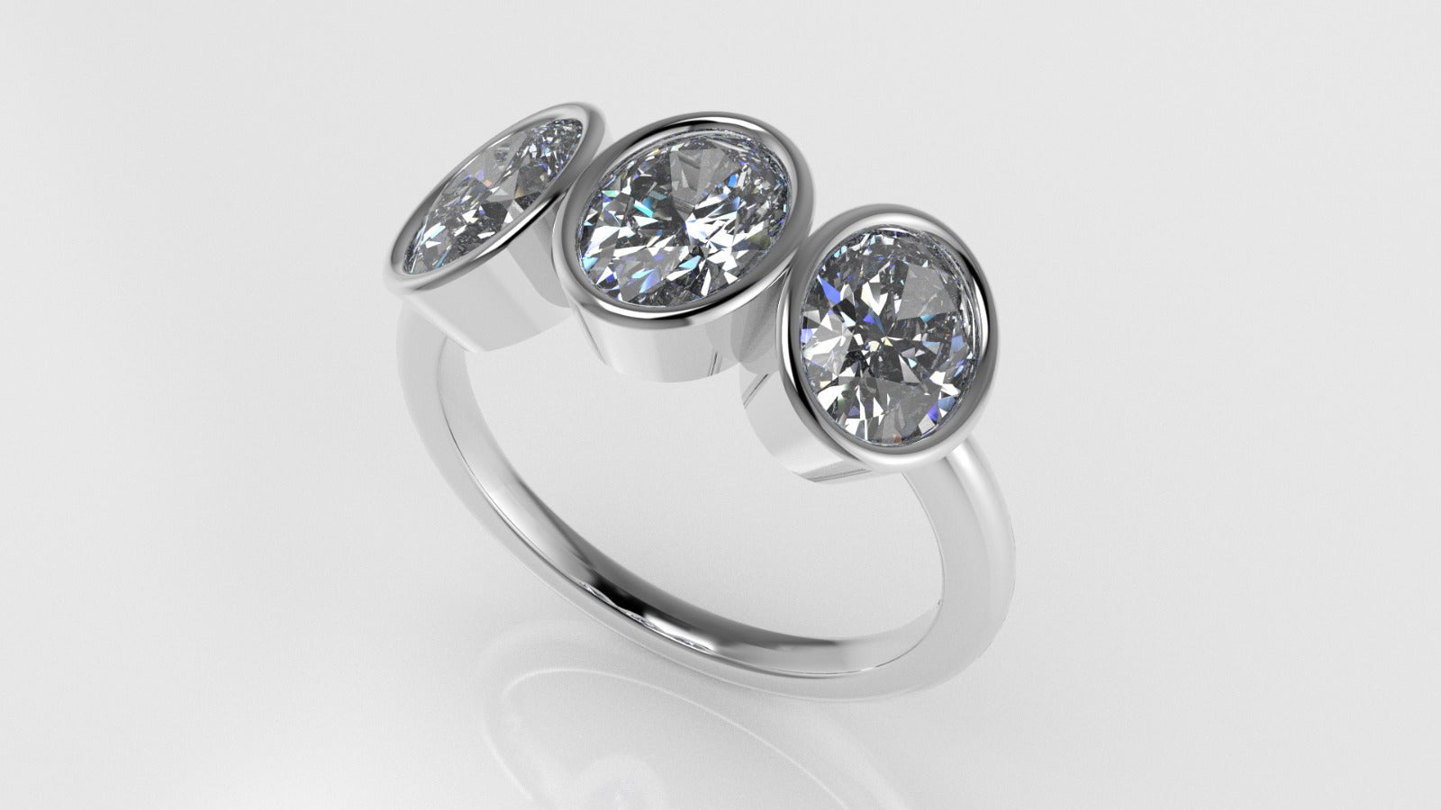 Engagement ring with 3 Diamond VS1, "stone oval" "setting bezel"