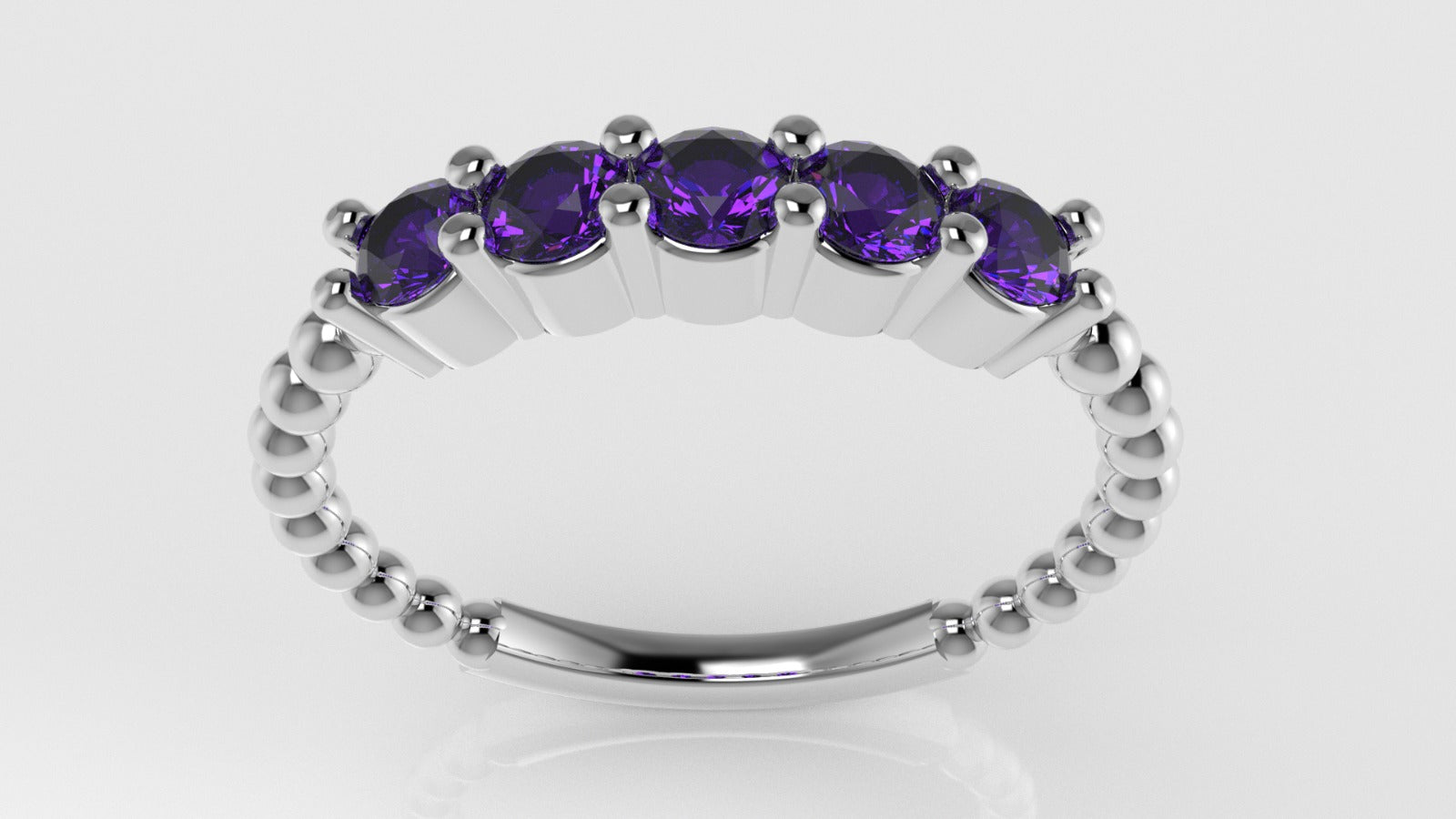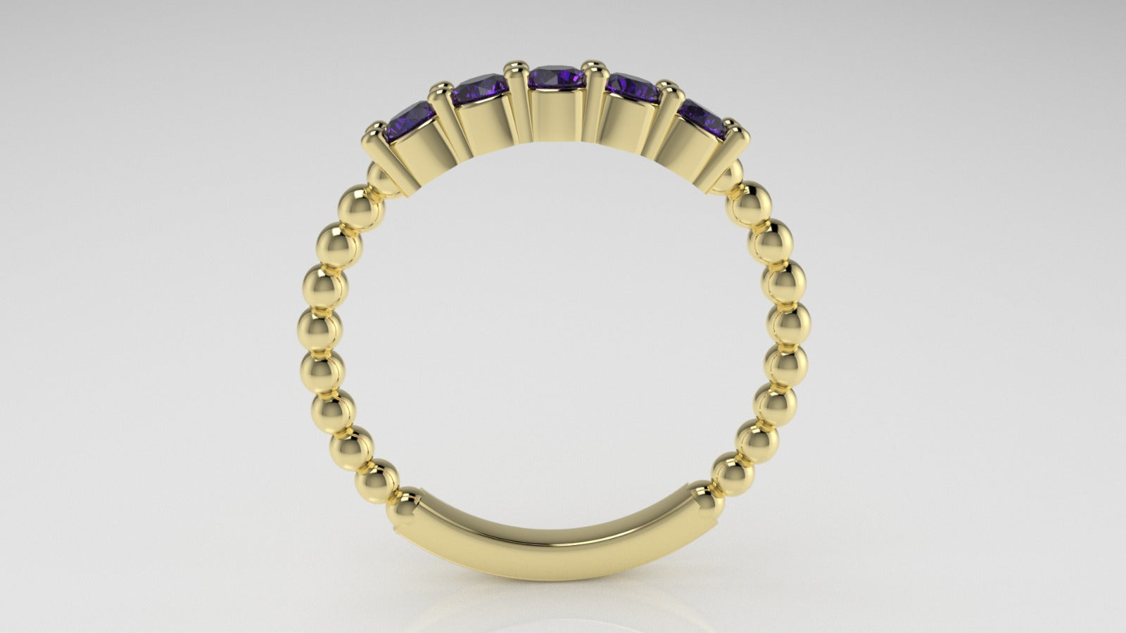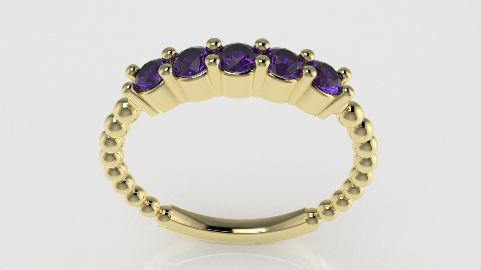 14K Ring with 5 AMETHYST 3mm each, stt prongs, stone round