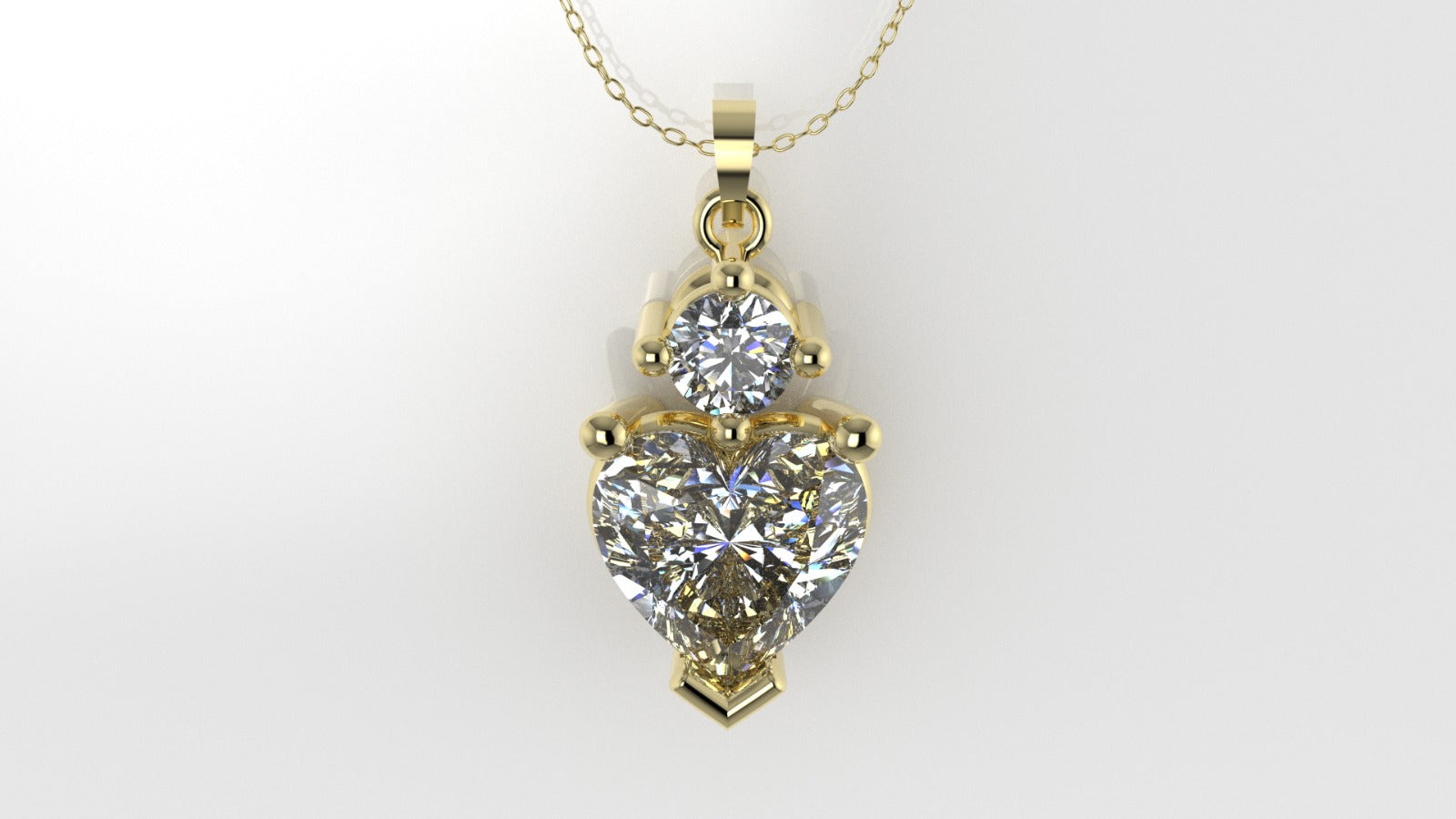 14K Pendant with 2 Diamond VS1, includes 18 inch chain, Stone Heart and Round