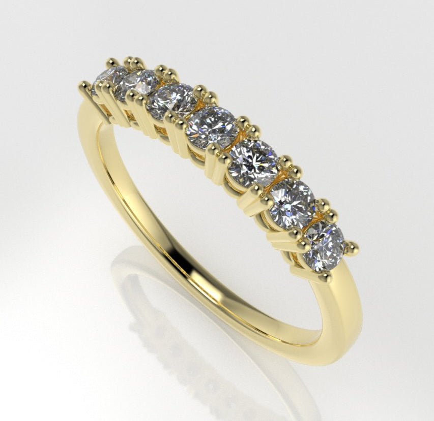 14k yellow gold Ring with 7 Diamond 2.5mm VS1 each, "stt prongs" stone round
