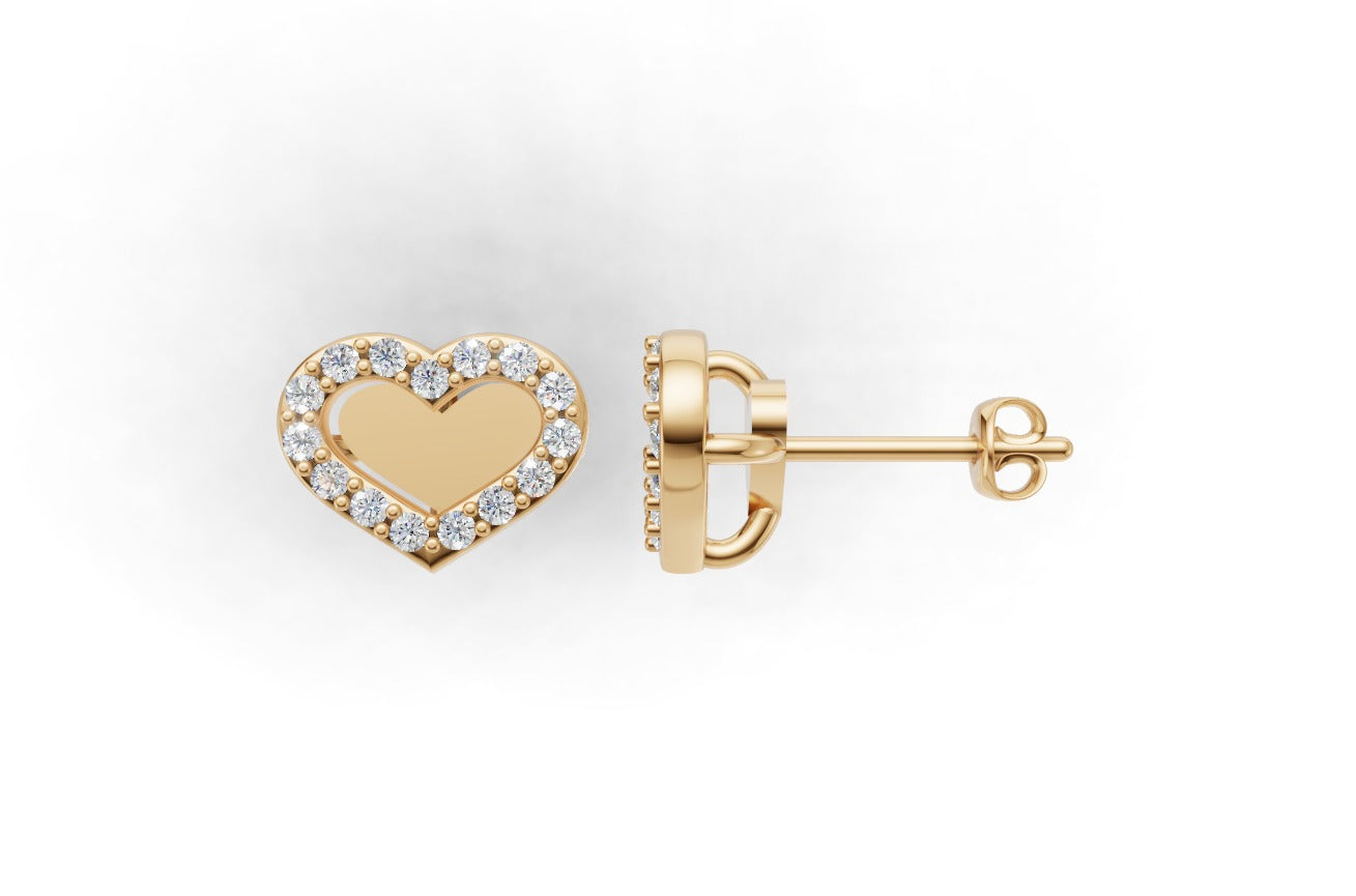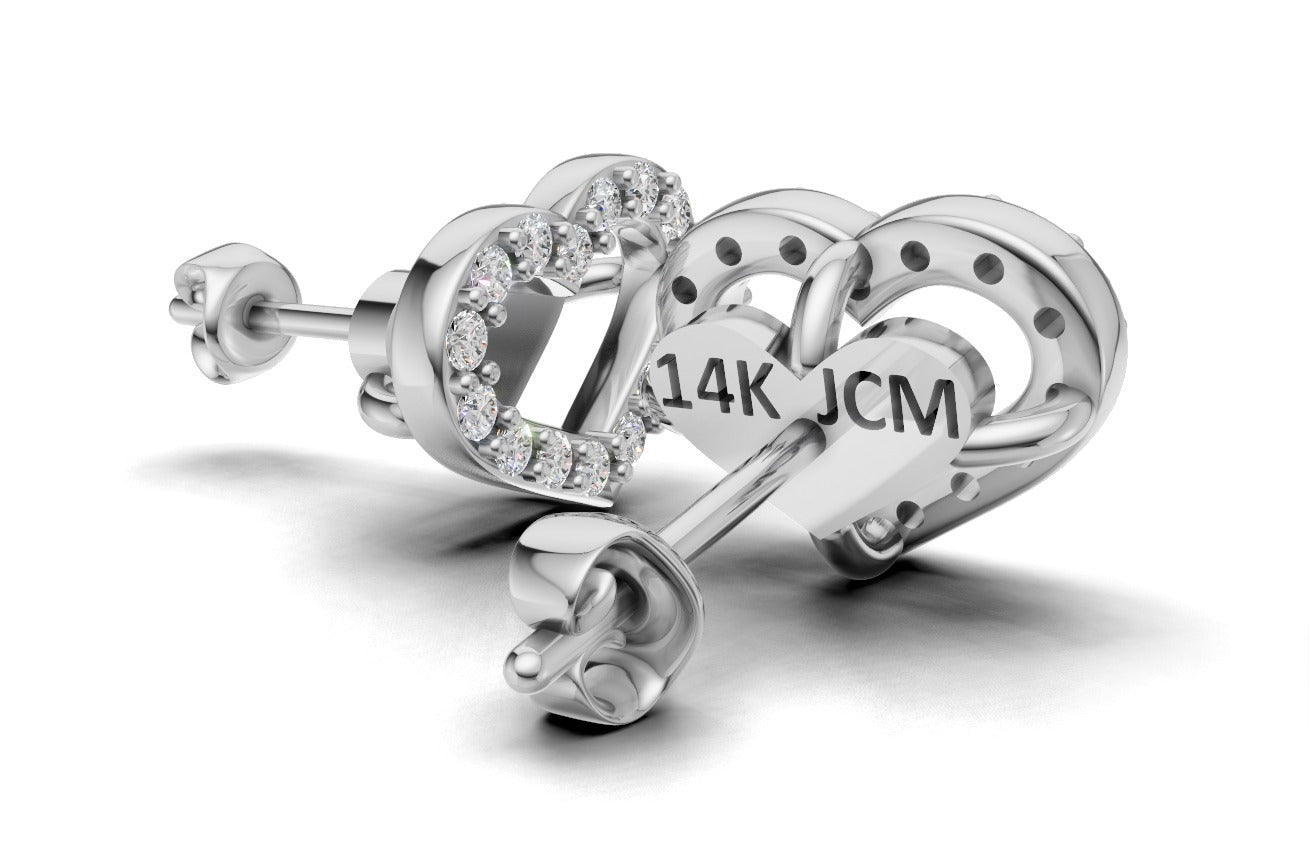 14k Gold Earrings Hearts with 30 Diamonds, "STT: Prong", Push Back