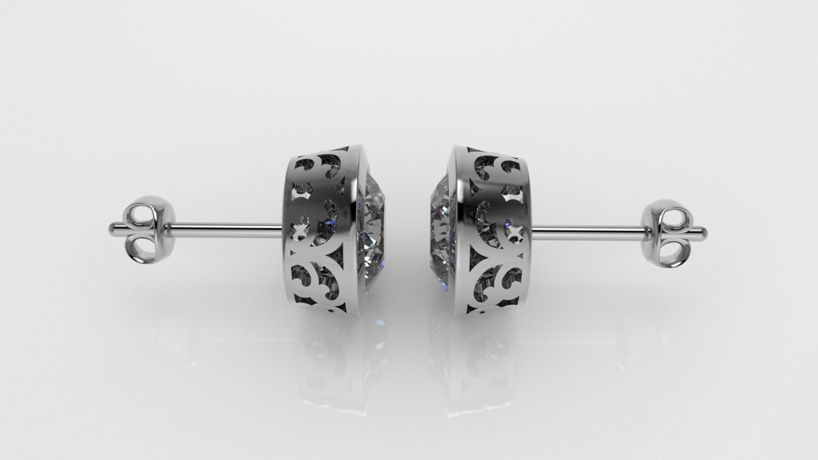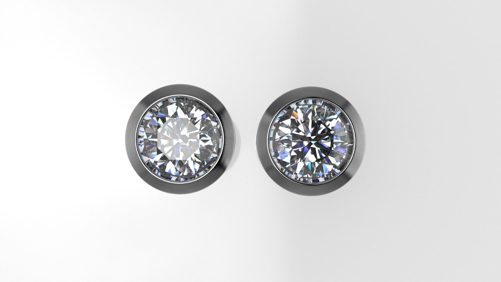 14K Gold Earrings with 2 Diamonds, "STT: Bezel", Push Back