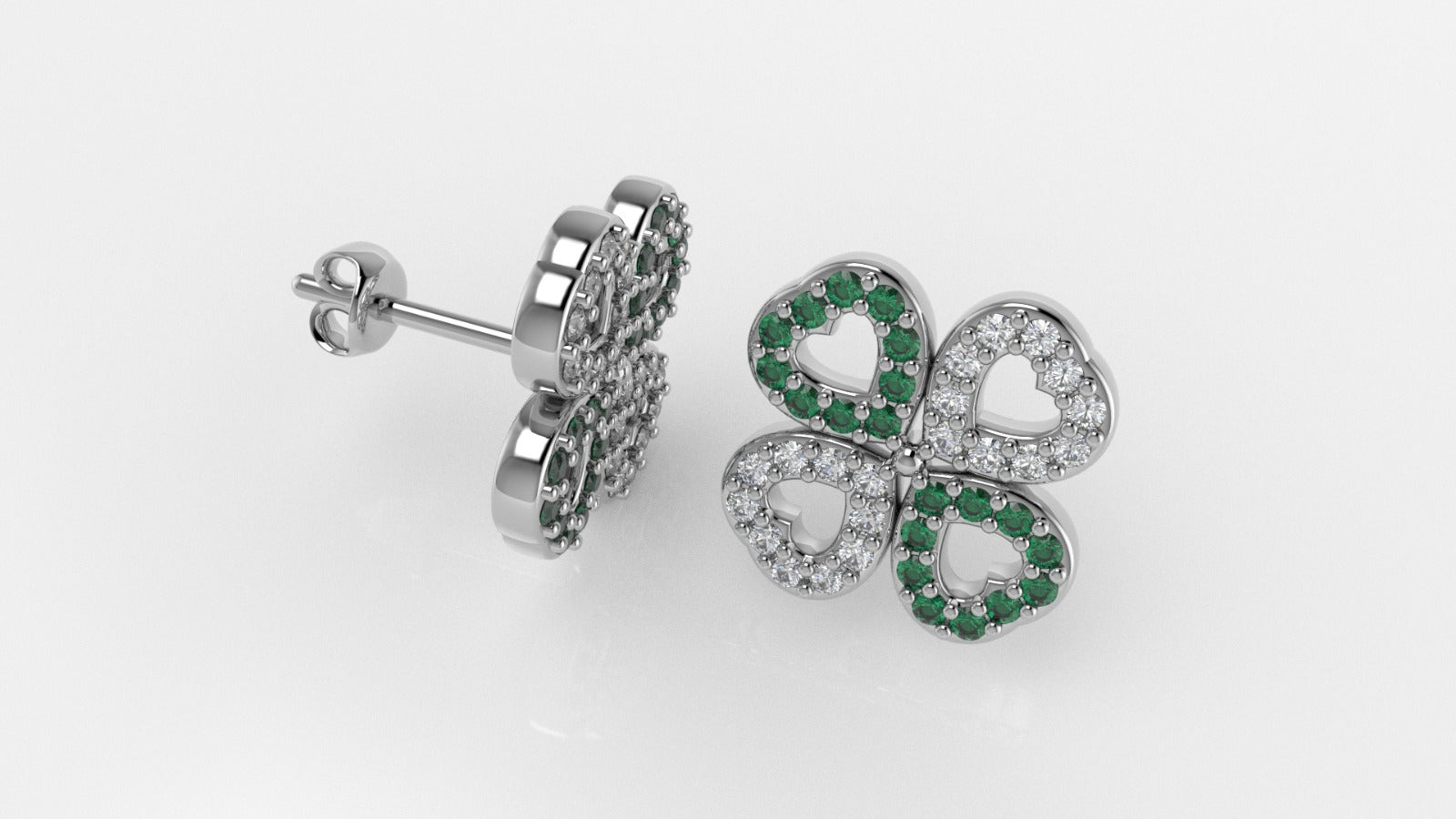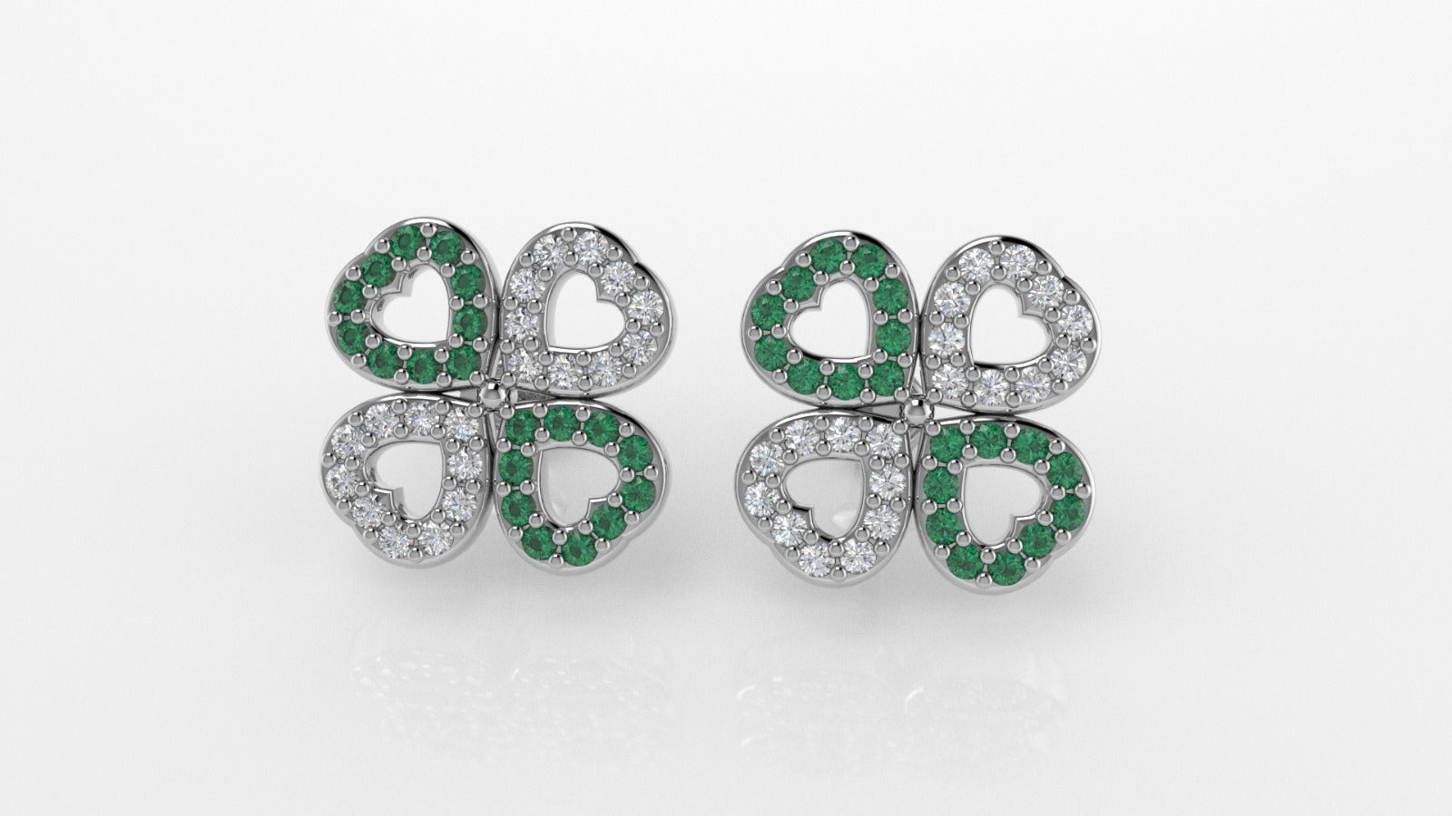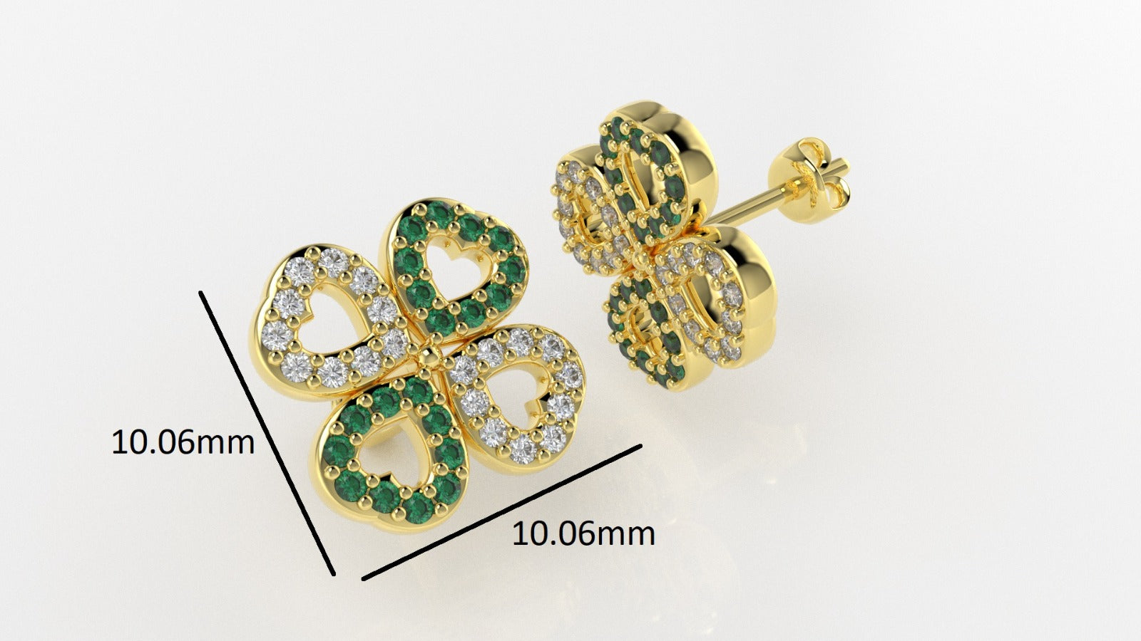 14K Gold Earrings with 40 Emeralds and 40 Diamonds, "STT: Prong", Push Back, Heart Style