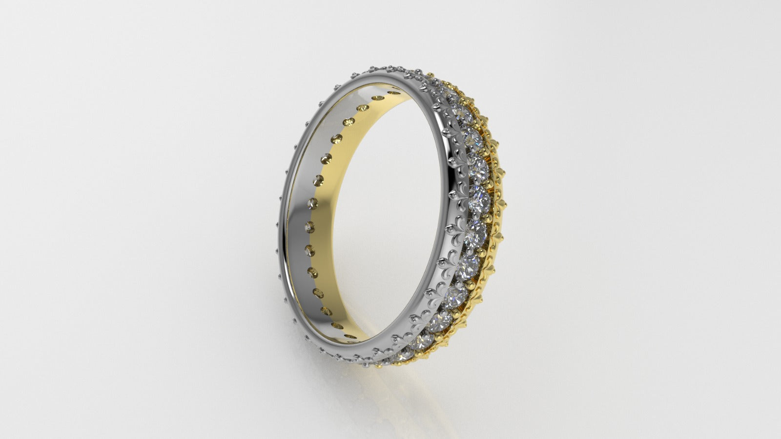 14K Gold Engagement Ring with 30 Diamonds, STT: Prong, Cut Chanel, For men or women