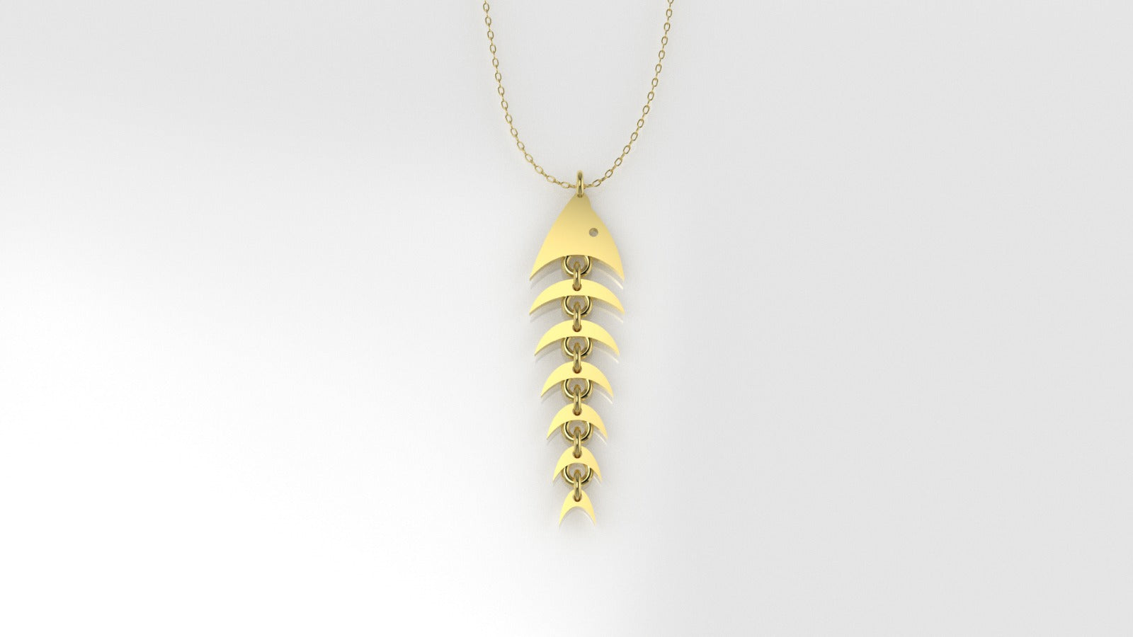14K Gold Pendant, Only Pendant, Fish Skeleton Style