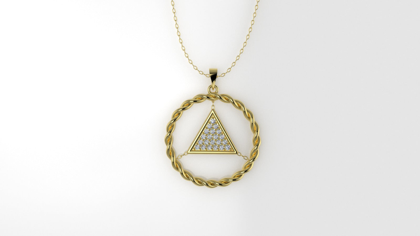 14K Gold Pendant with 21 Diamonds VS1, STT: Prong, Rope