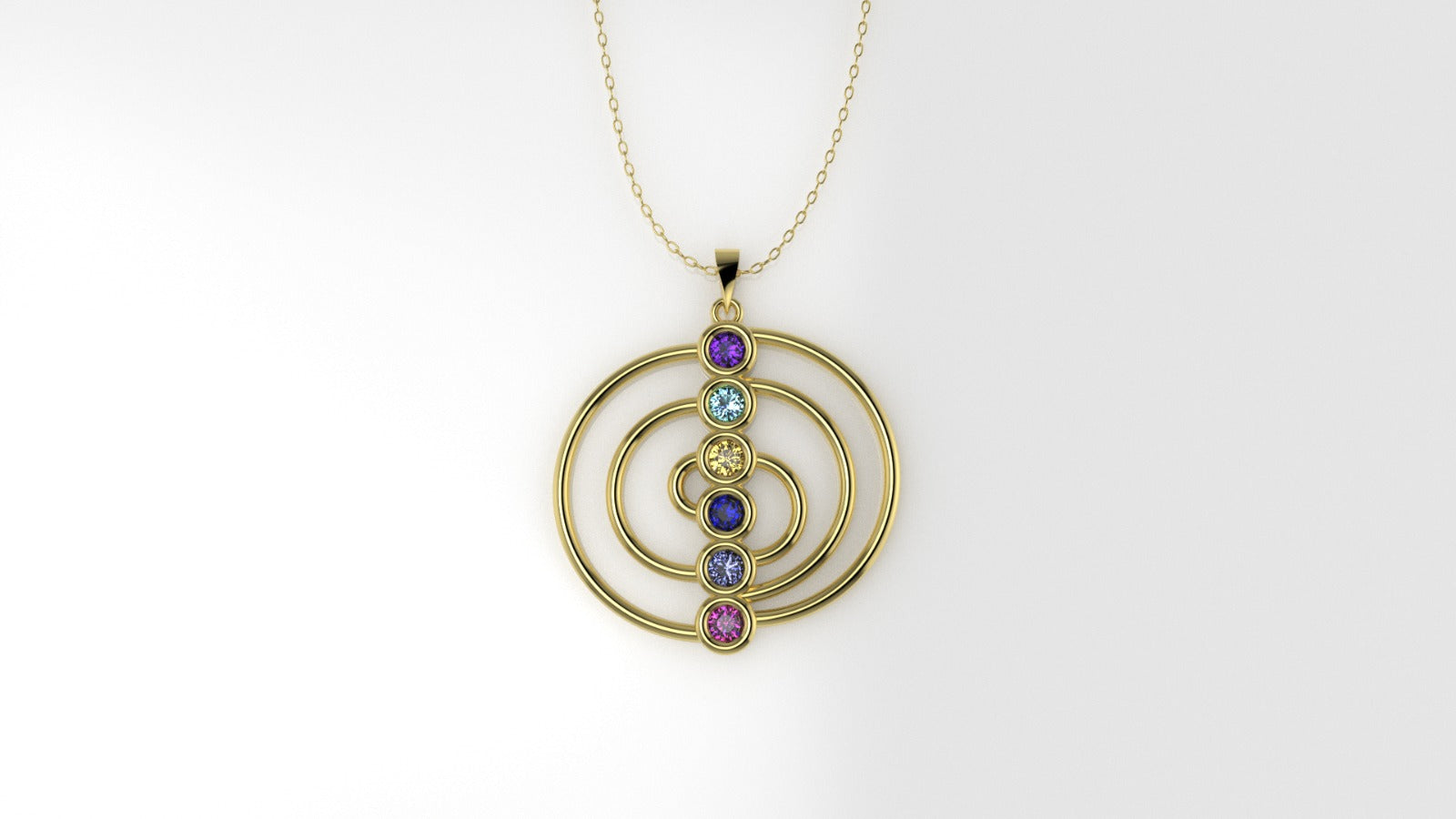 14K Gold Pendant with 6 Color Stones, STT: Bezel, Bow Style