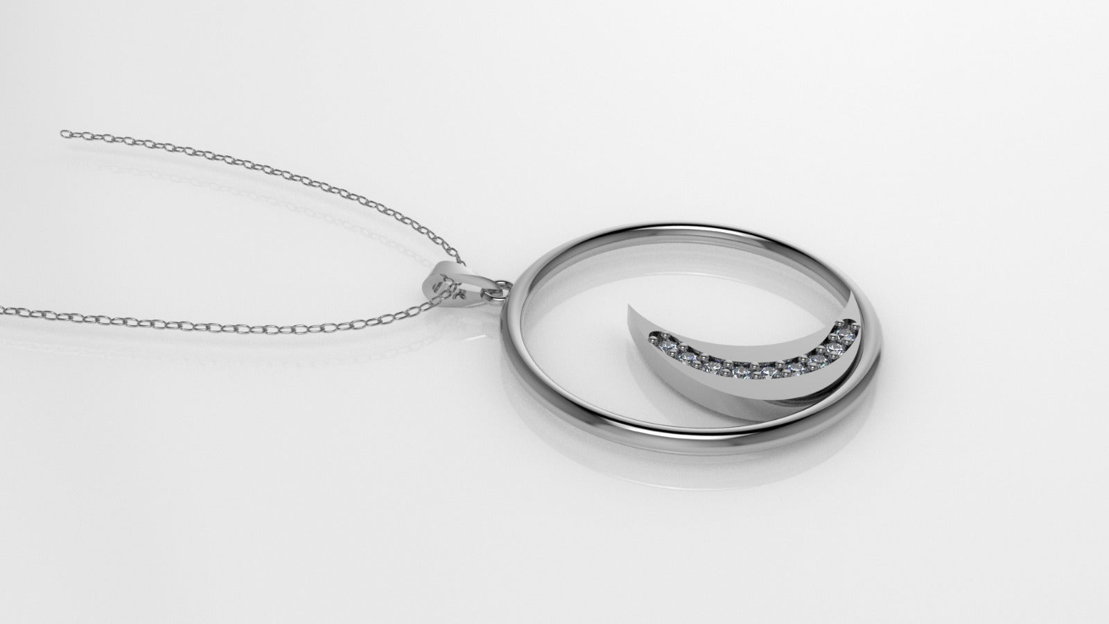 14K Gold Pendant with 9 Diamonds, STT: Prongs, Moon Style, Cut Chanel