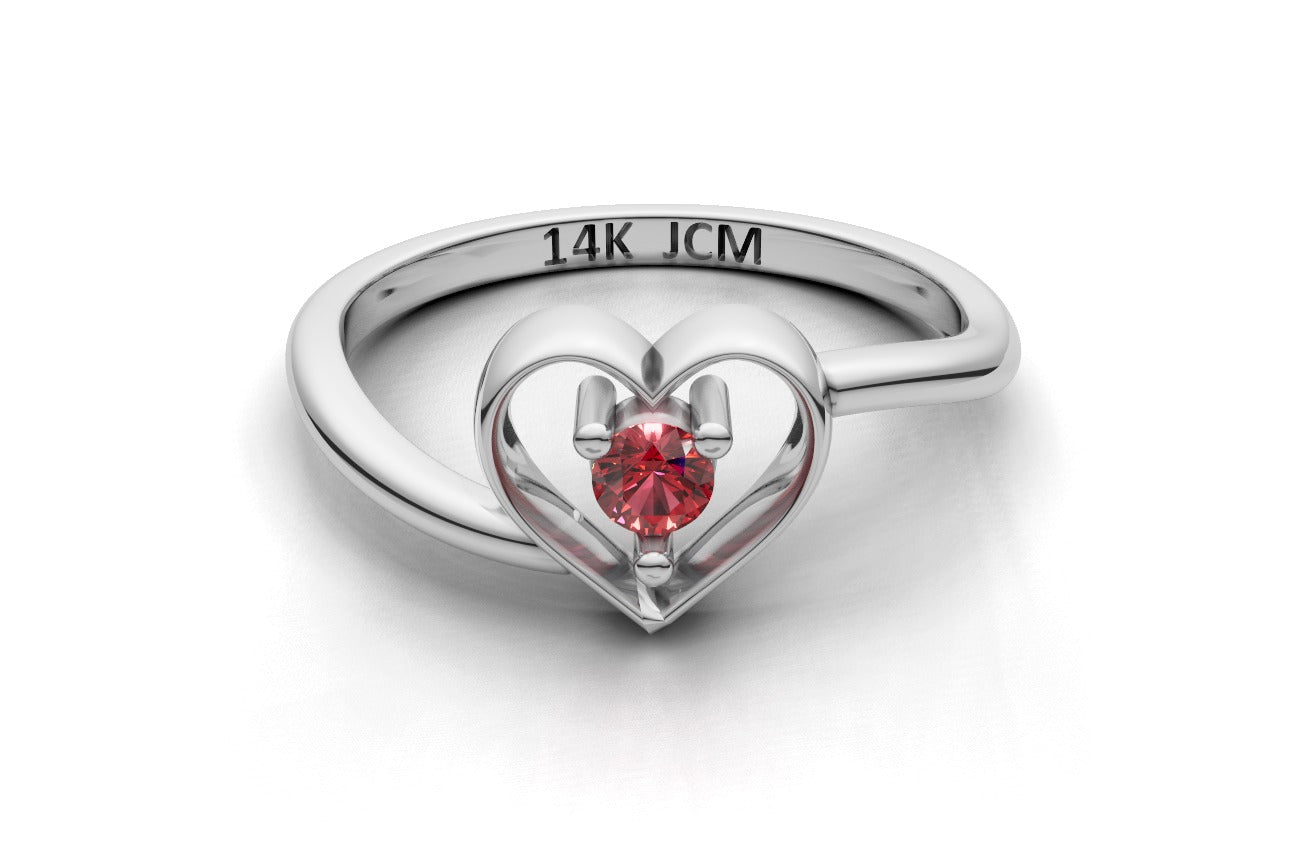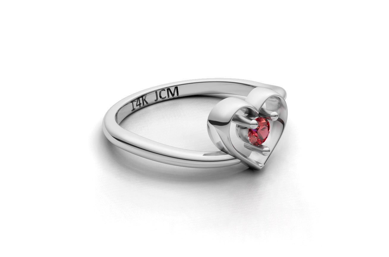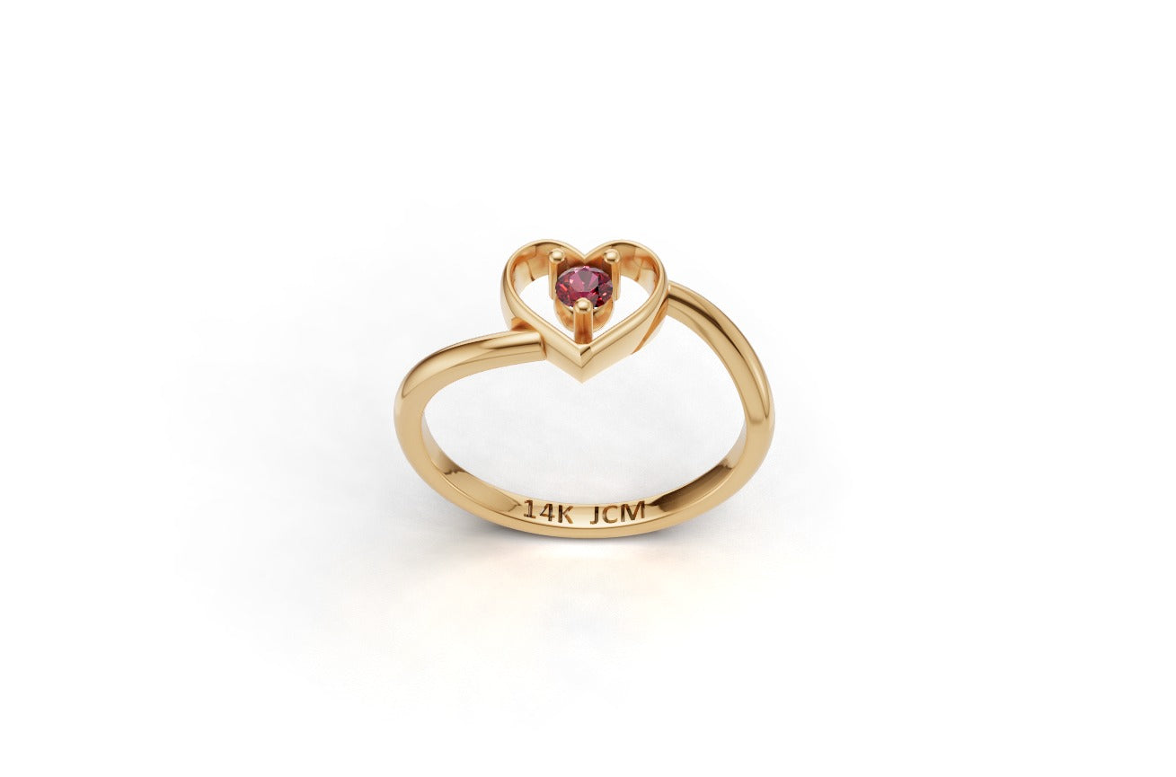14K Gold Ring Heart with 1 Ruby, STT: 3-Prong