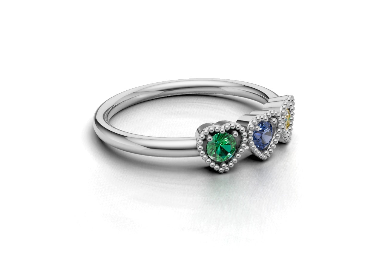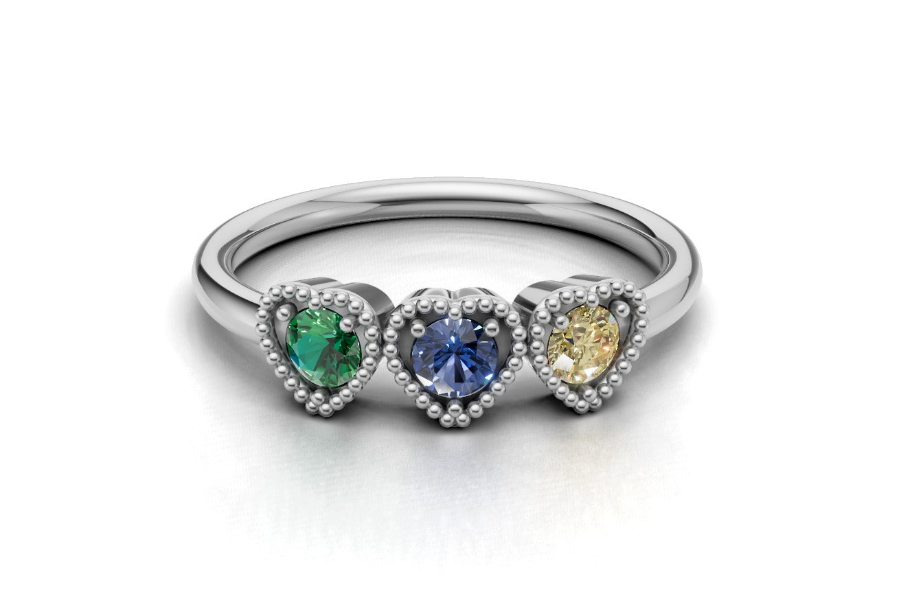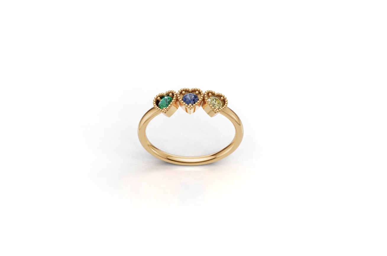14K Gold Ring Heart with 3 Stones, STT: 3-Prong, Filigree