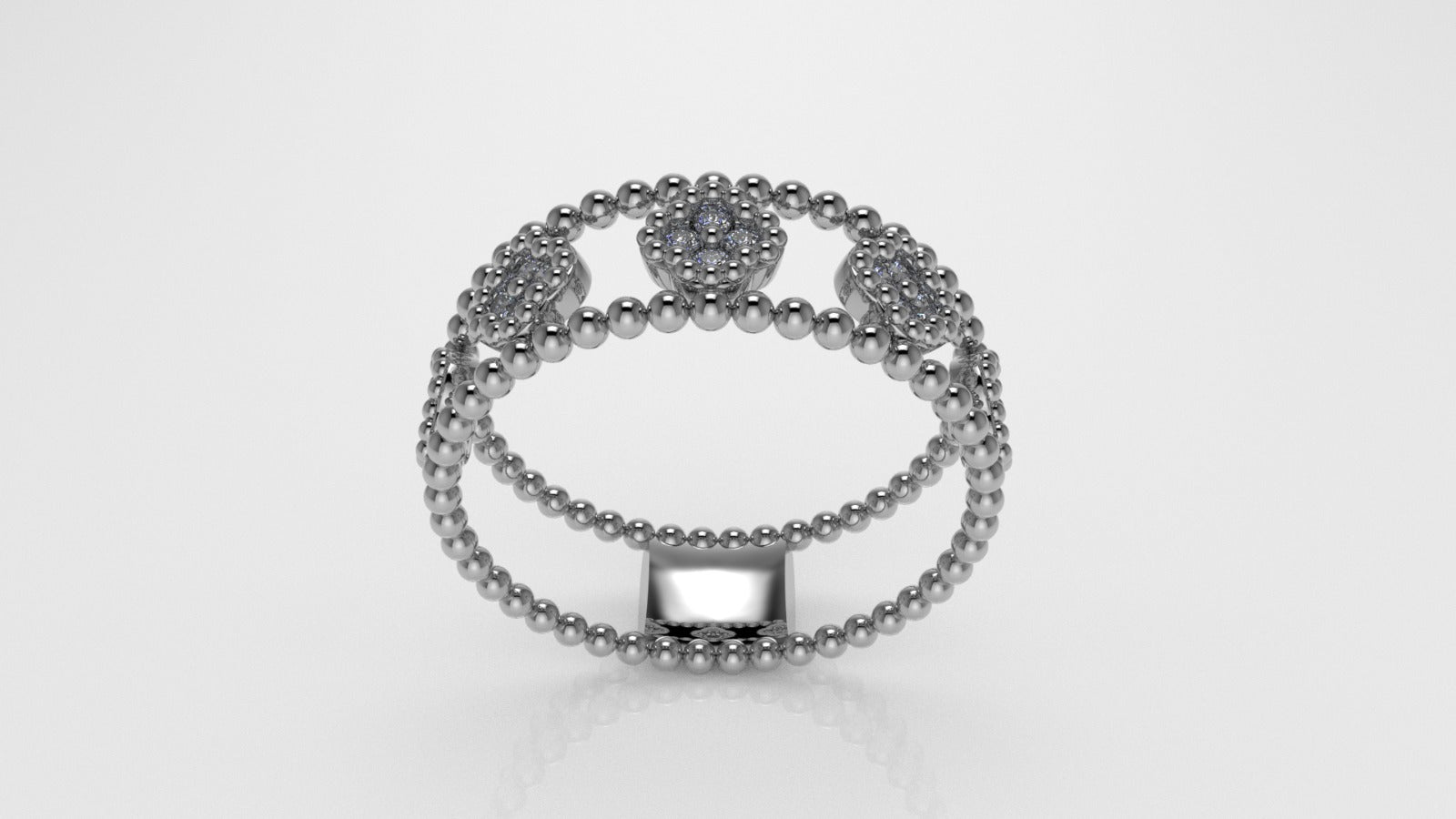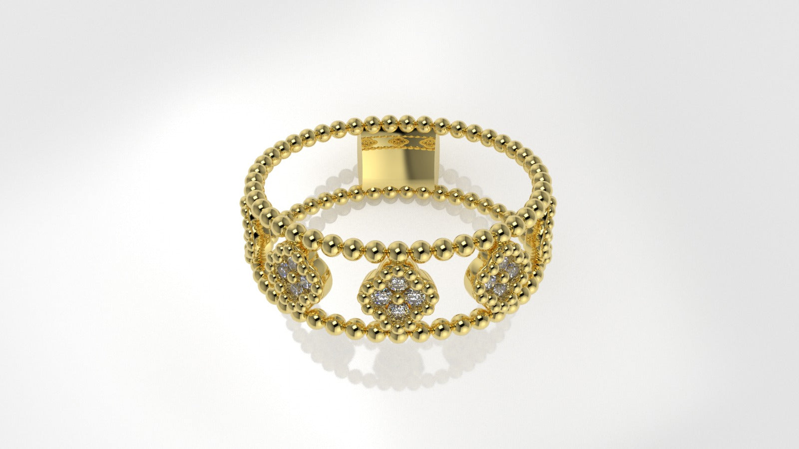 14K Gold Ring with 20 Diamonds, STT: Prong and Bezel, Filigree, 5 Clover