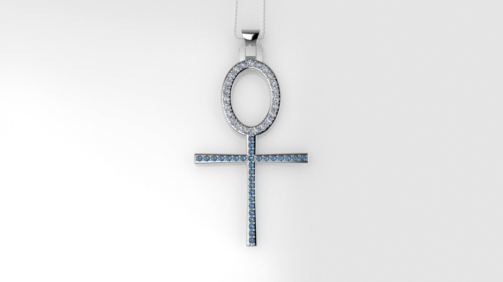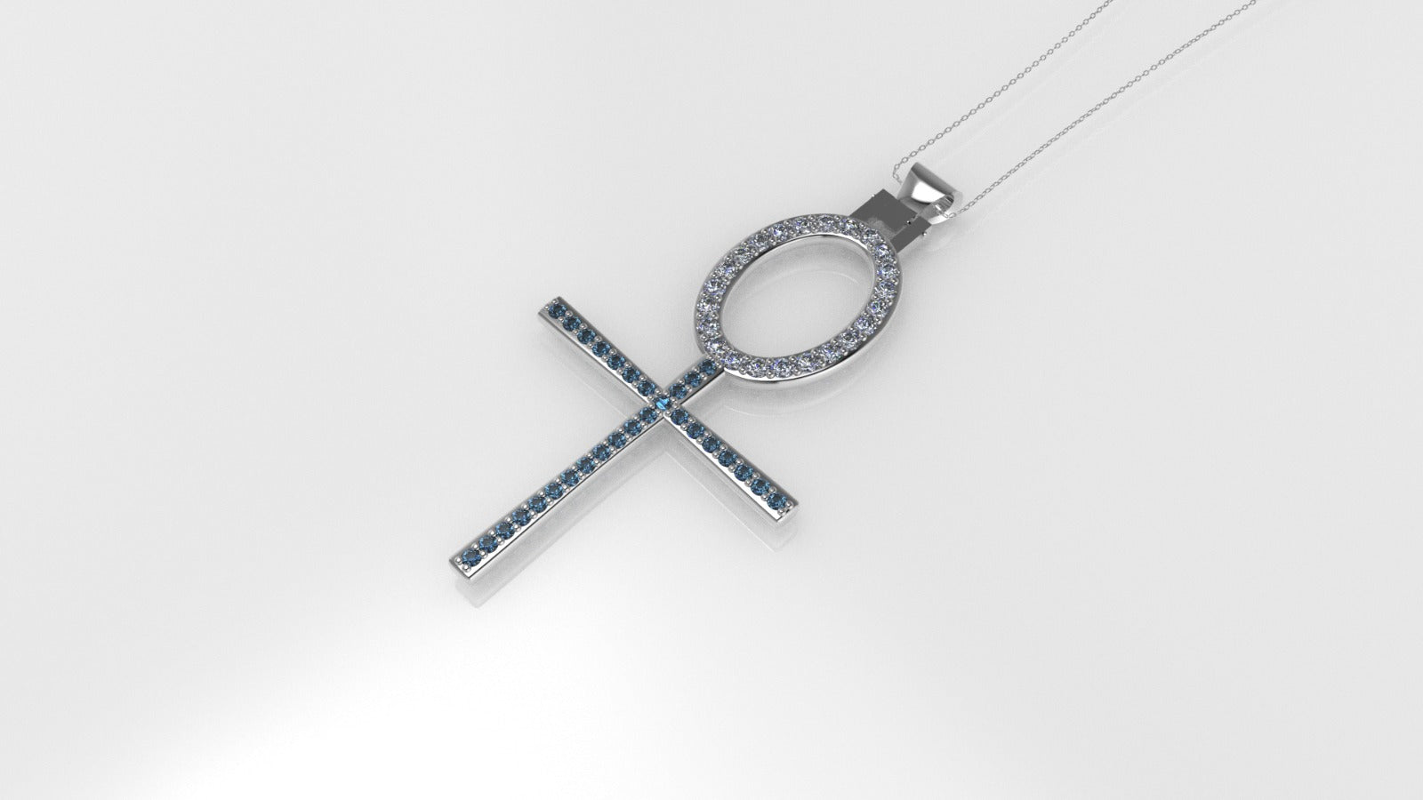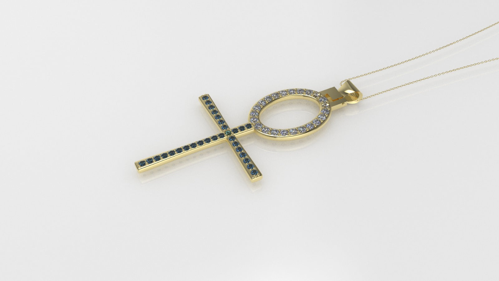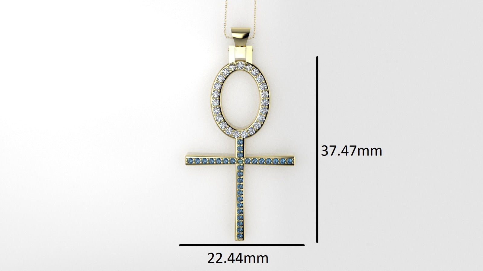 14K Pendant with 23 Diamond 1.5mm VS1 each and 30 Blue Topaz 1.2mm each, "Cross Style", Only Pendant