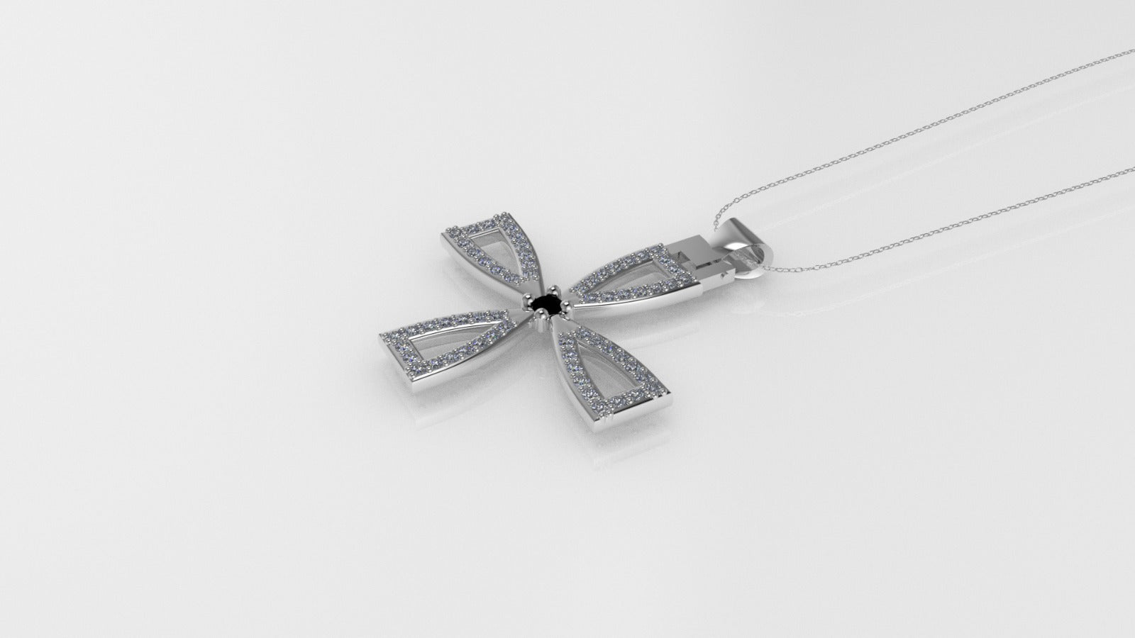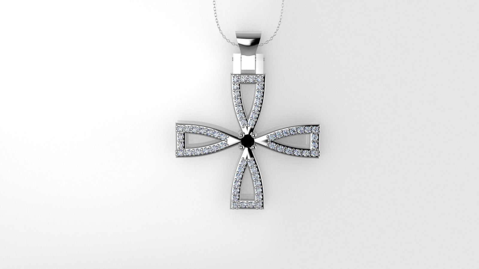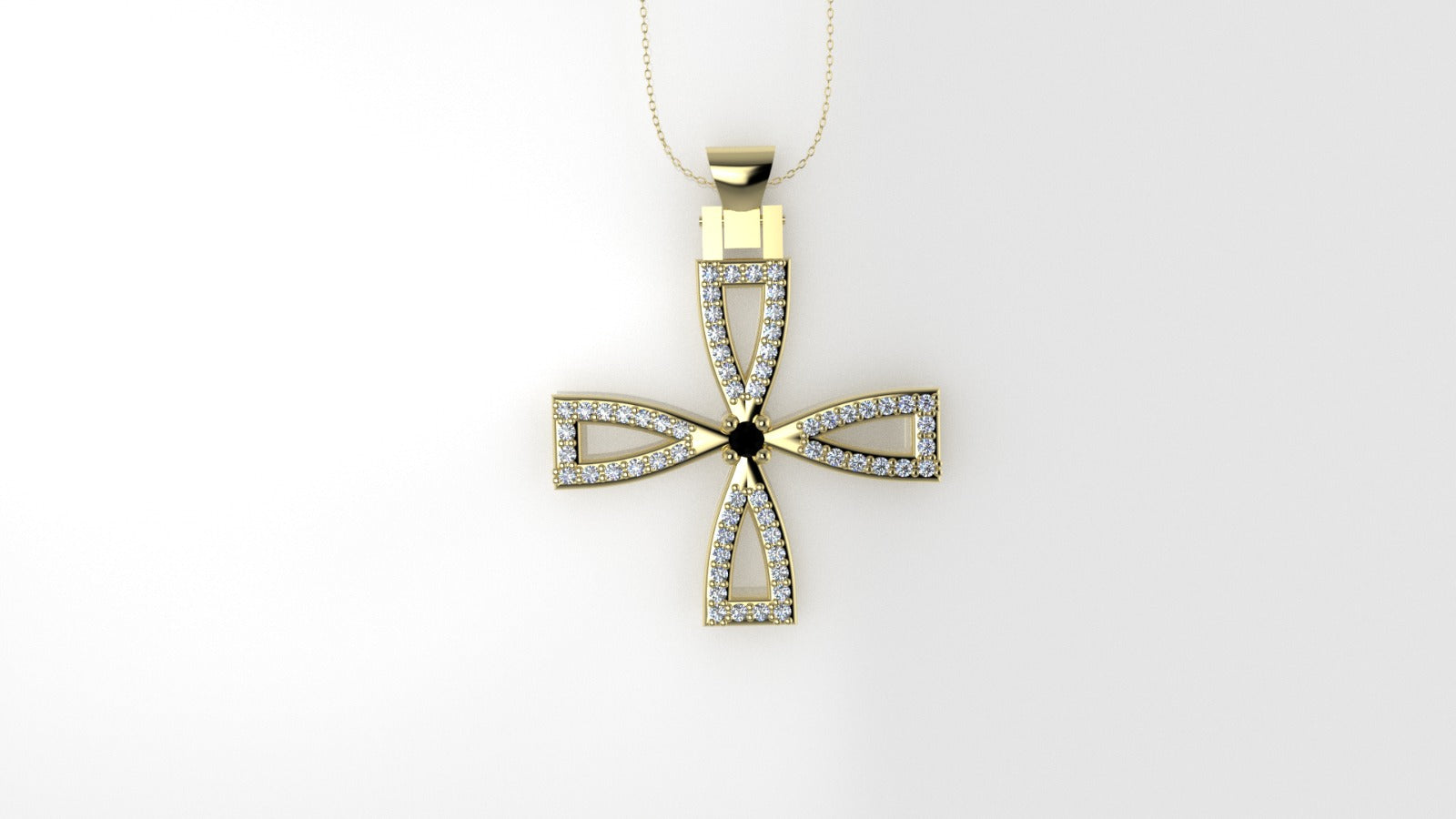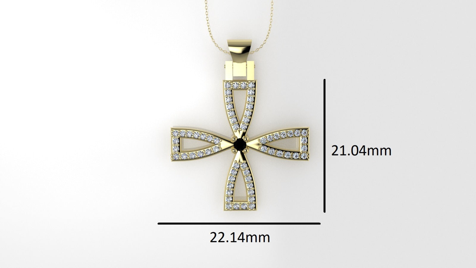 14K Pendant with 62 Diamond 1mm VS1 each and 1 Diamond Black 2mm, "Cross Style", Only Pendant