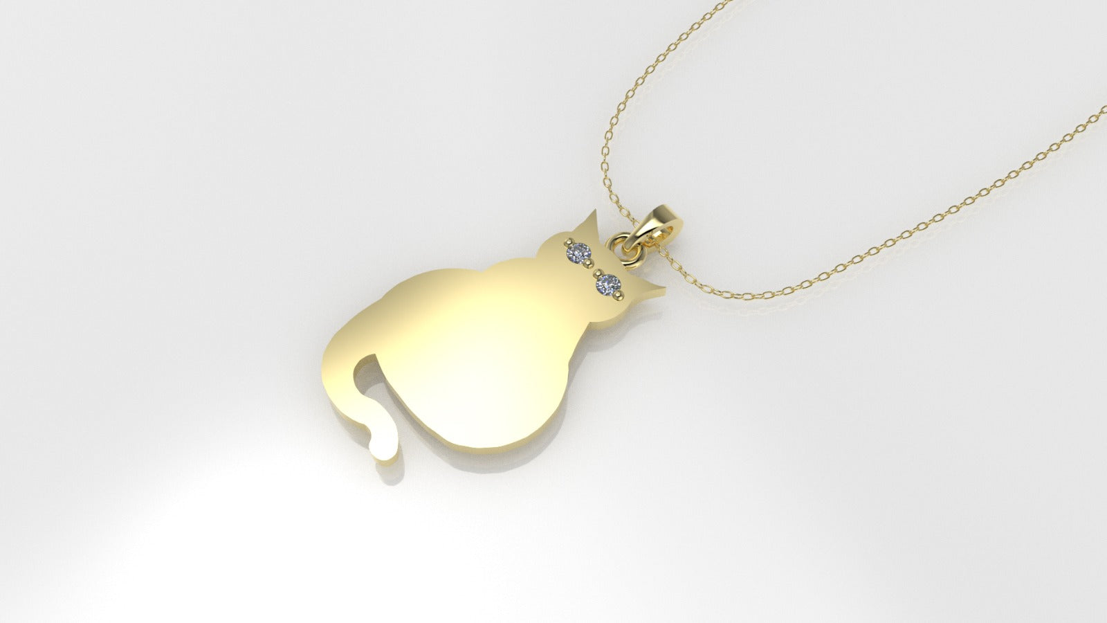 14K Pendant with 2 Diamonds 1mm each, includes 18 inch Chain, figure of a cat
