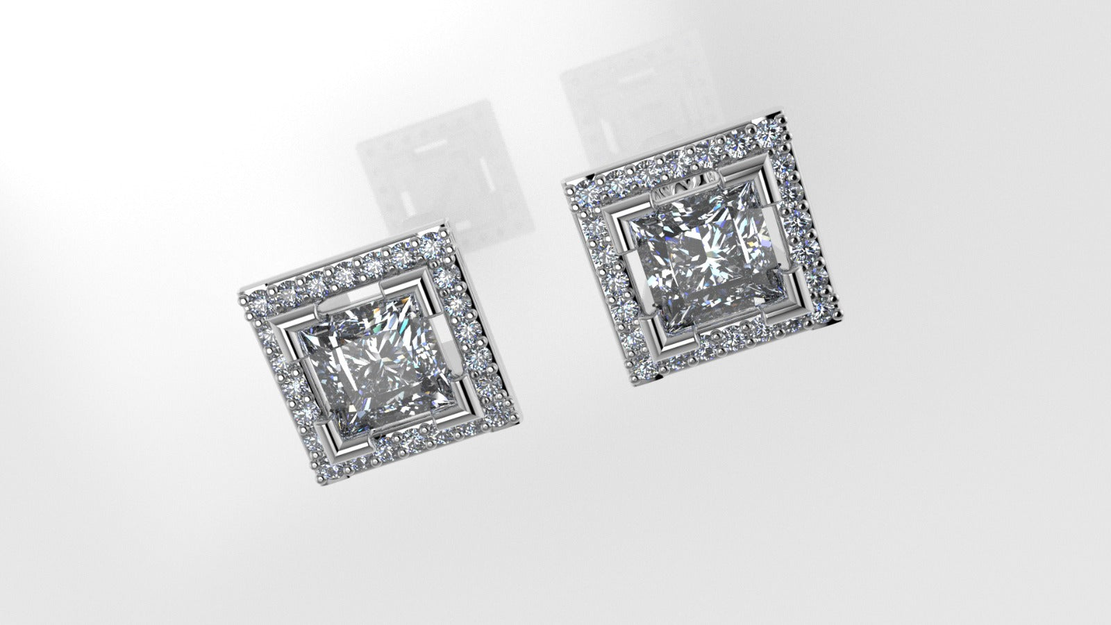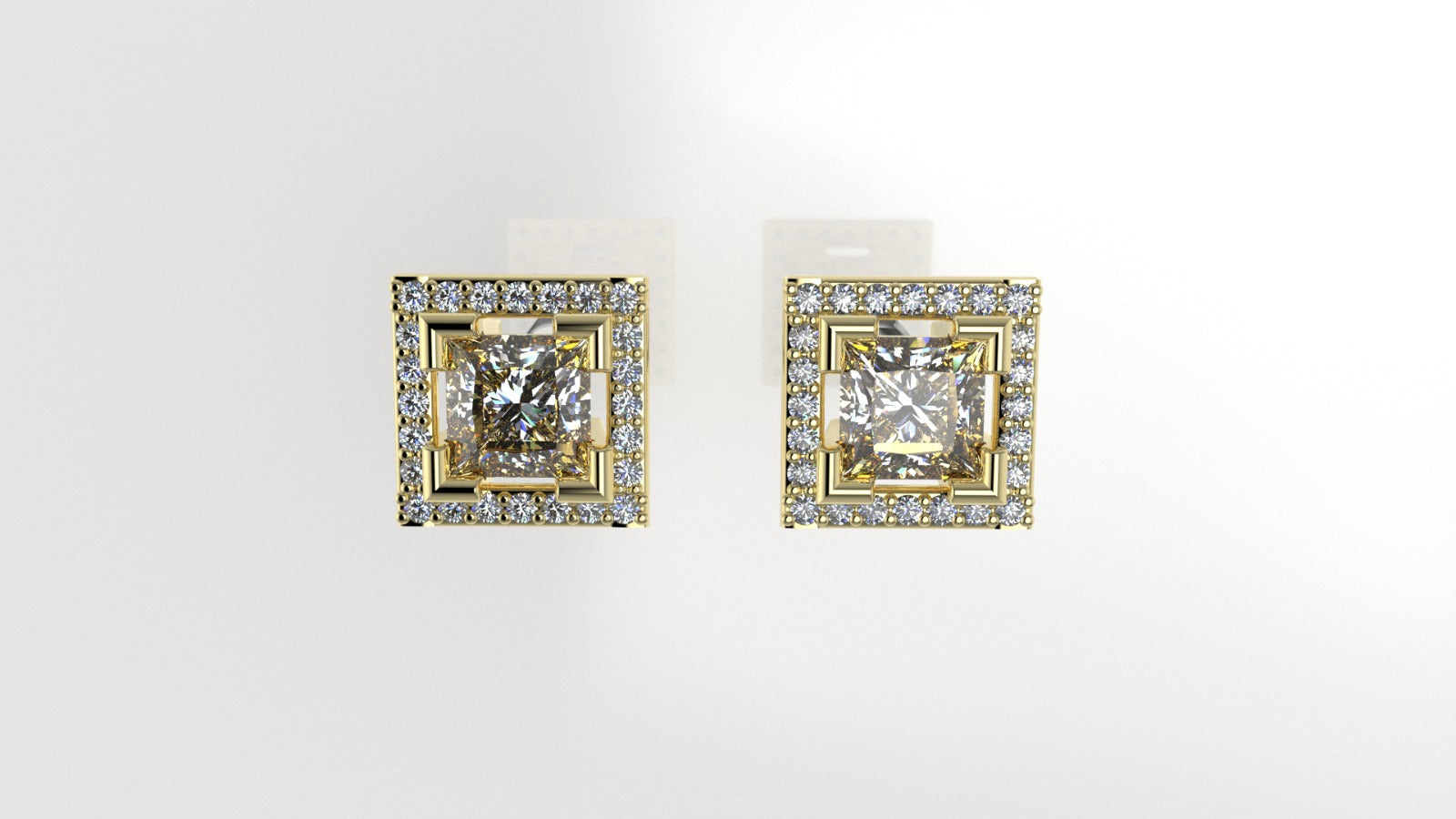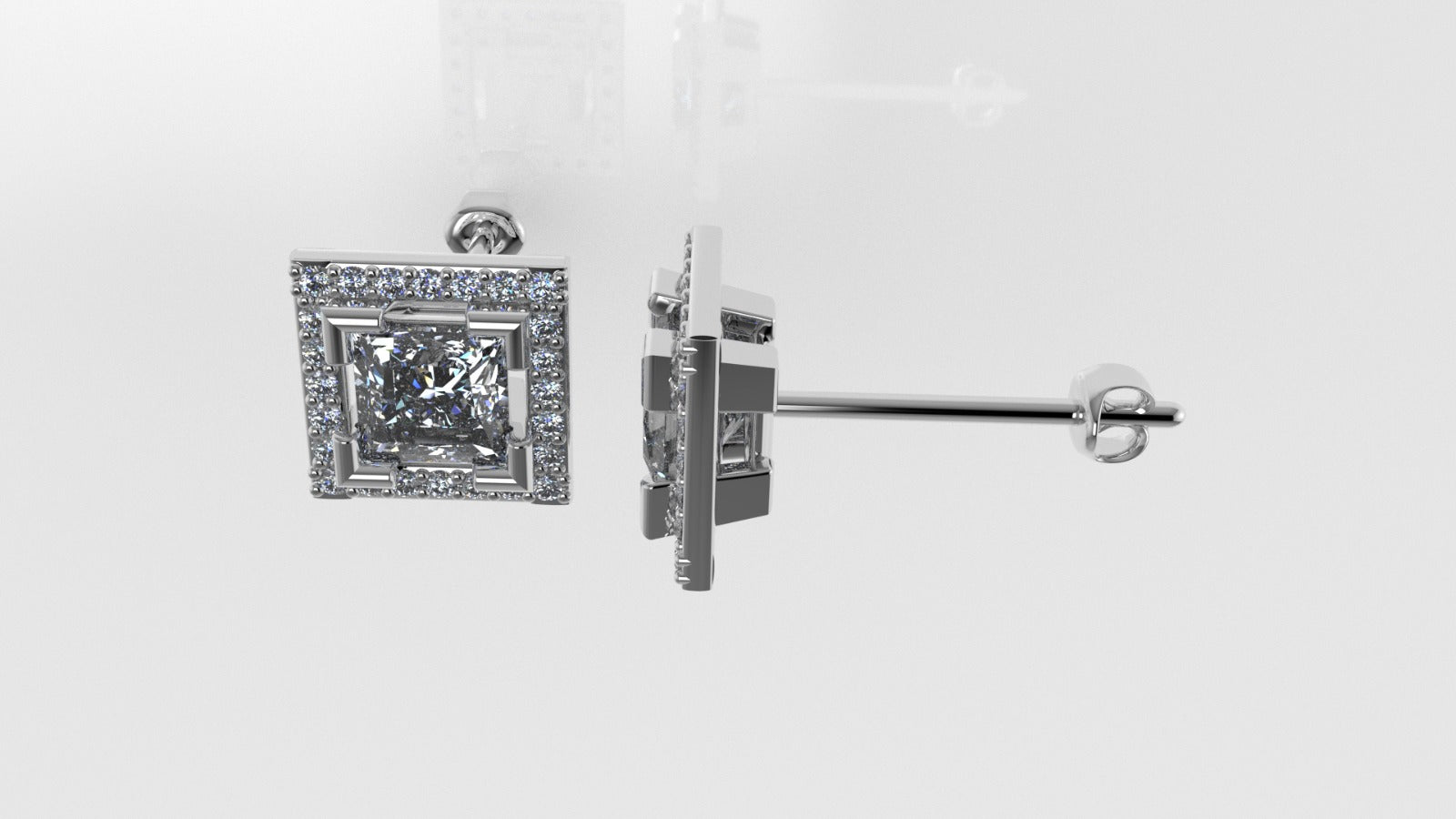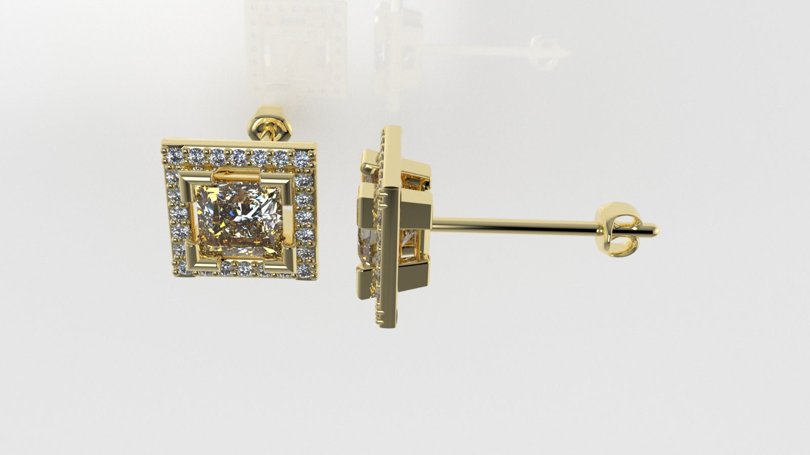 14k Push Back Earrings with 50 DIAMOND VS1, "Cut Princess and Stt: Prong"