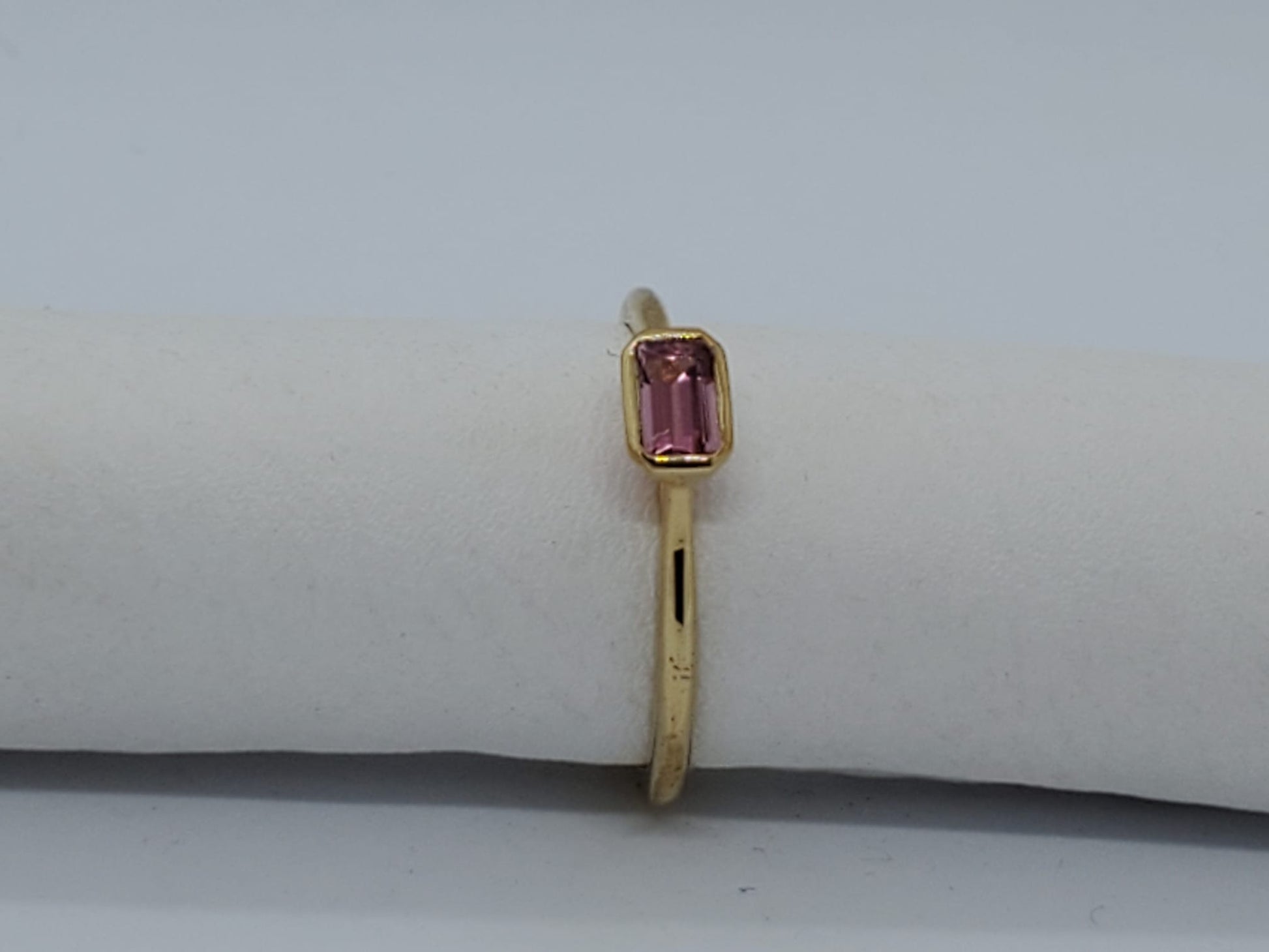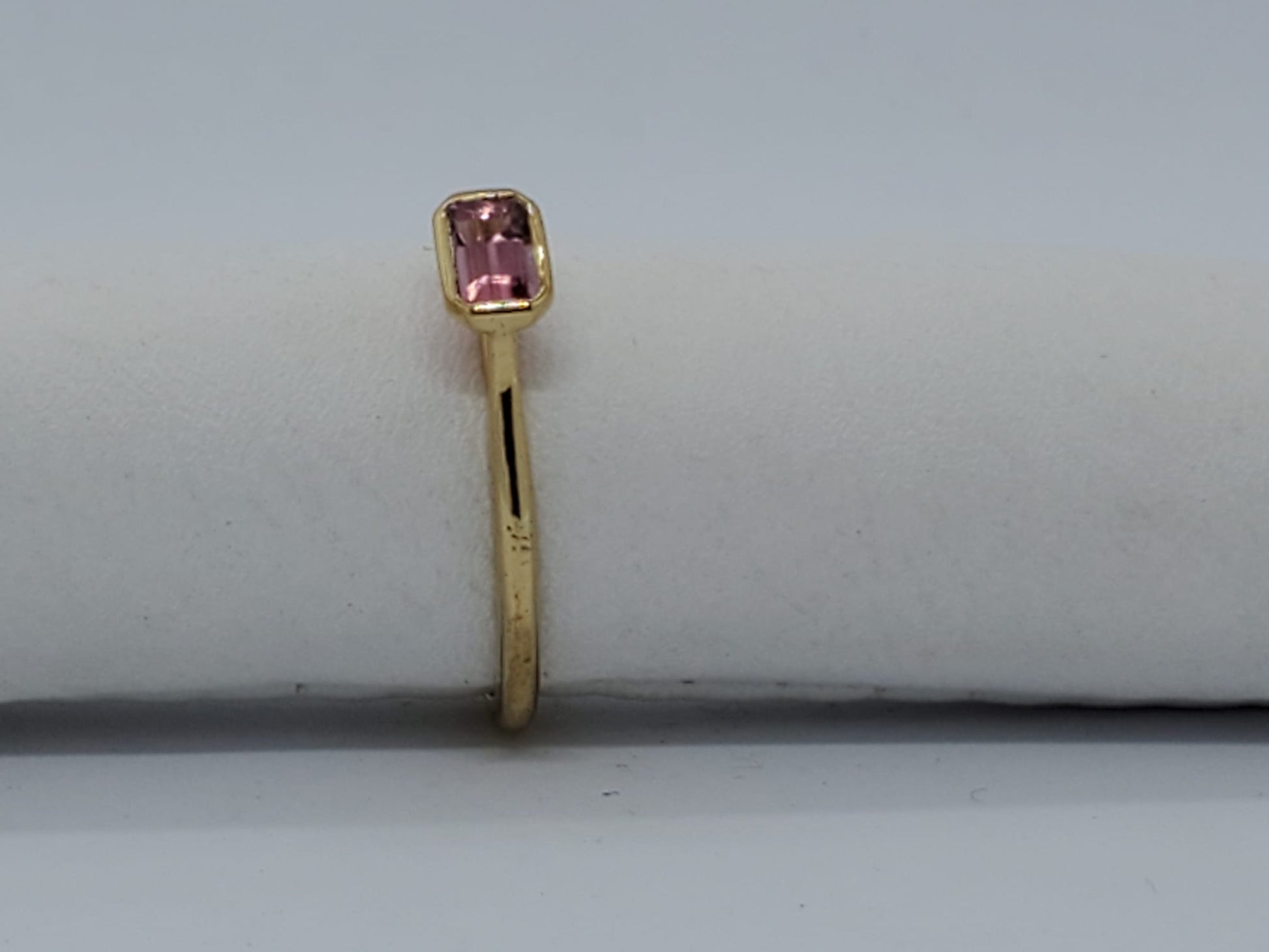 14k solitaire ring with emerald cut tourmaline stone, daily wear ring