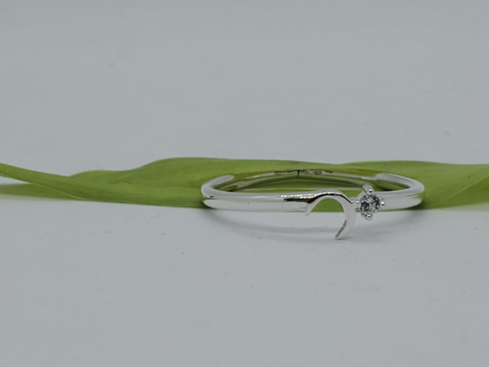 14k white gold ring, moon style, with Diamond 1.5mm VS1