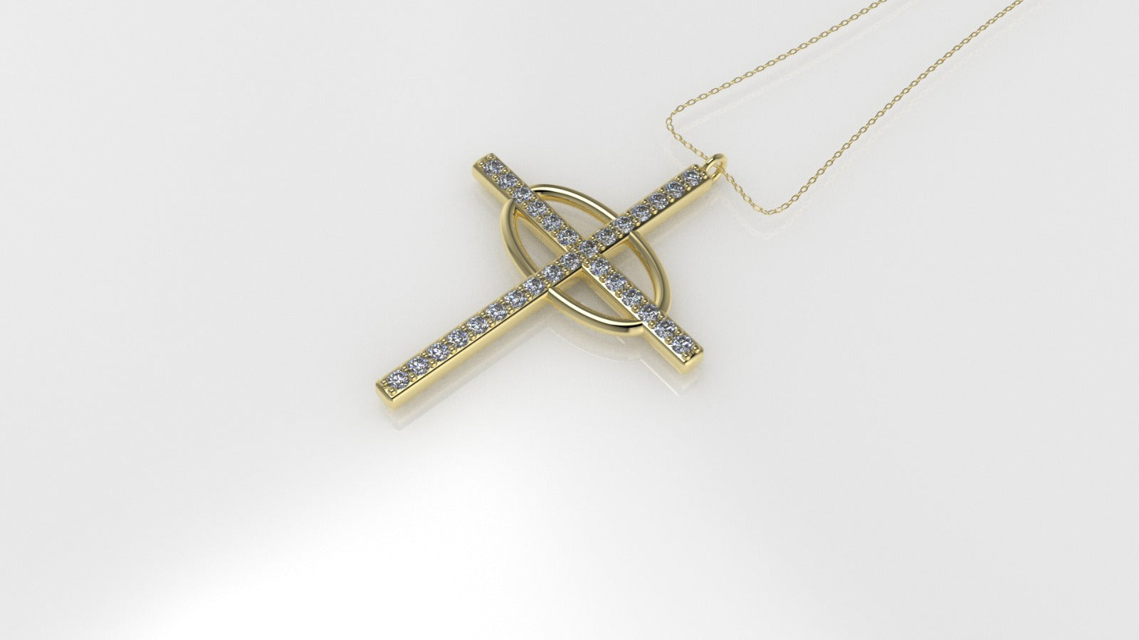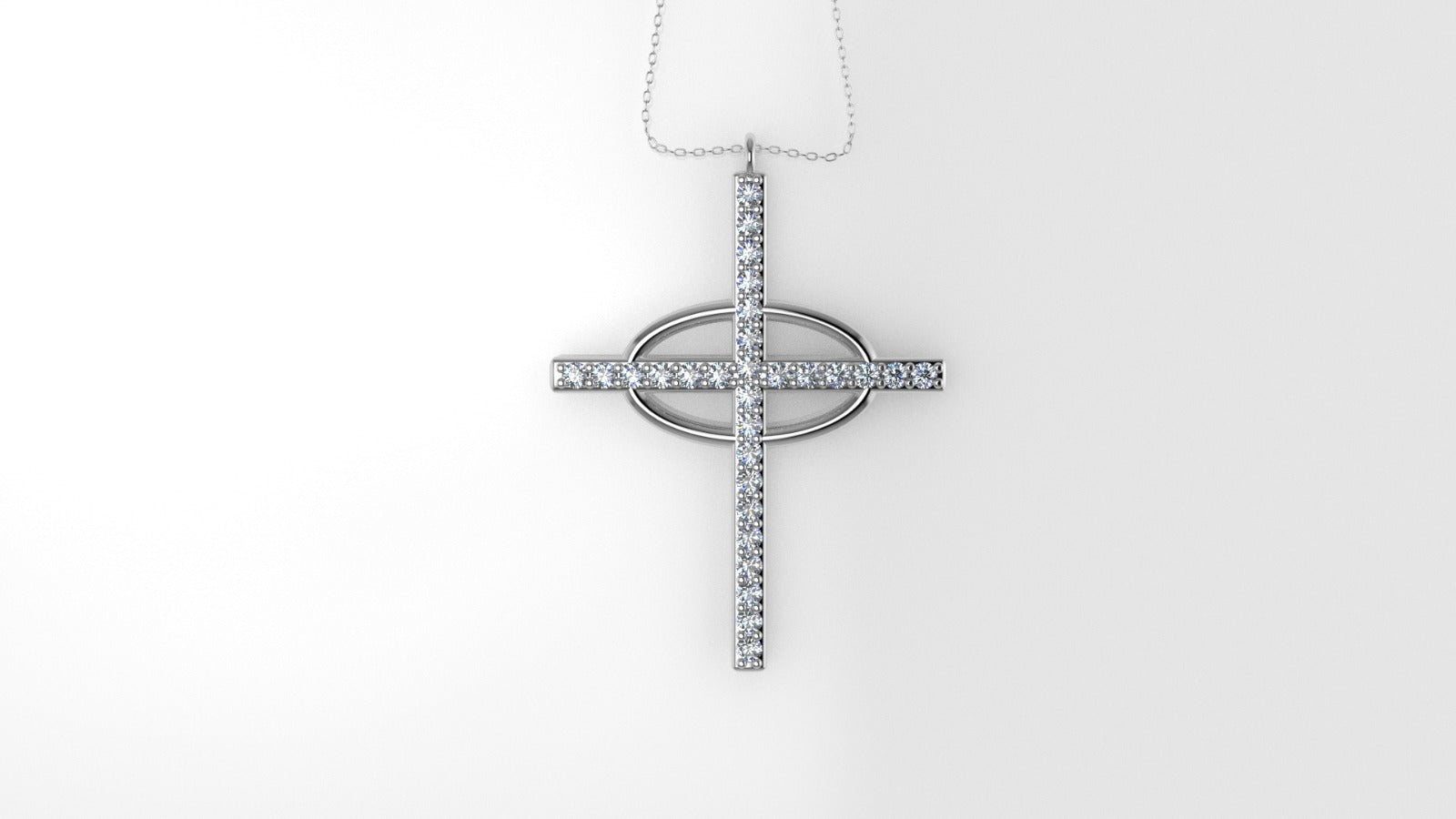 14K Pendant with 29 Diamond 1.2mm VS1 each, Only Pendant, "Cross and oval with Prongs"