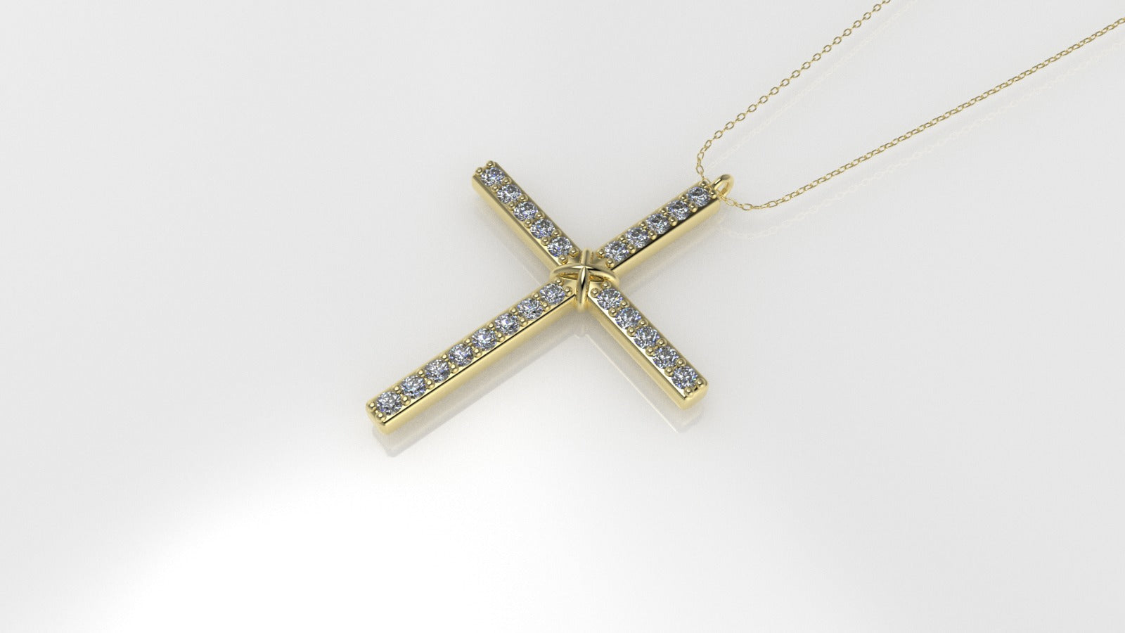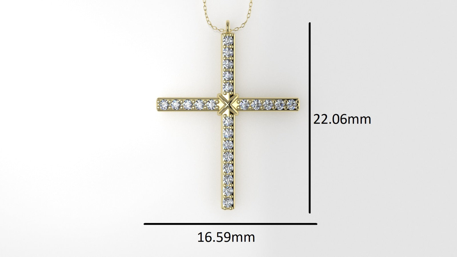 Yellow Gold Pendant with 23 Diamond 1.2mm VS1 each, Cross, Only Pendant