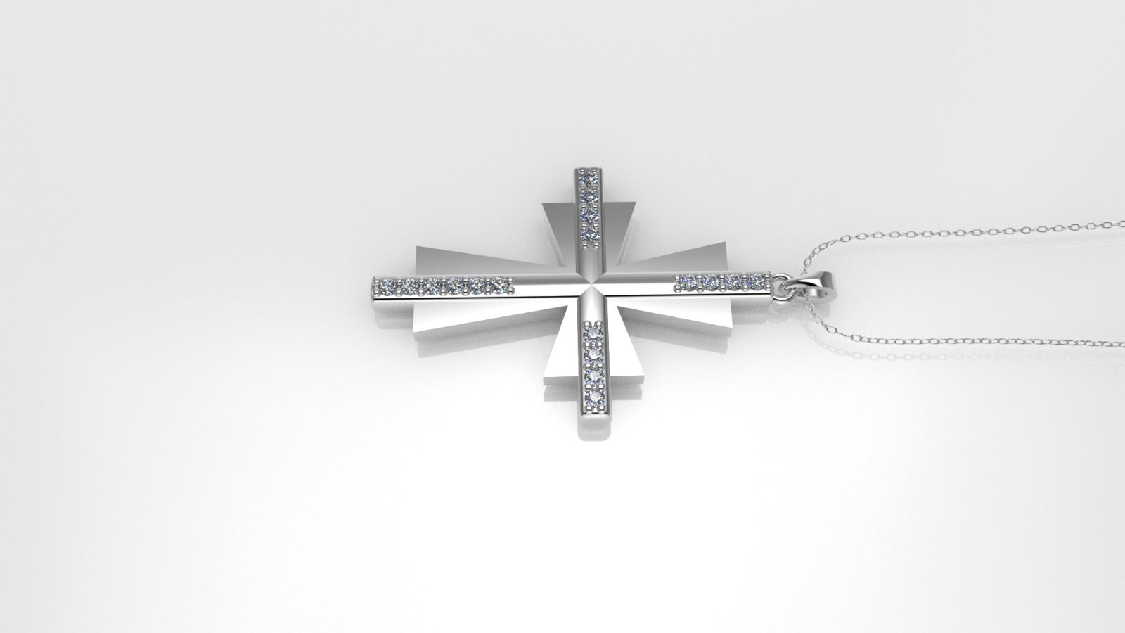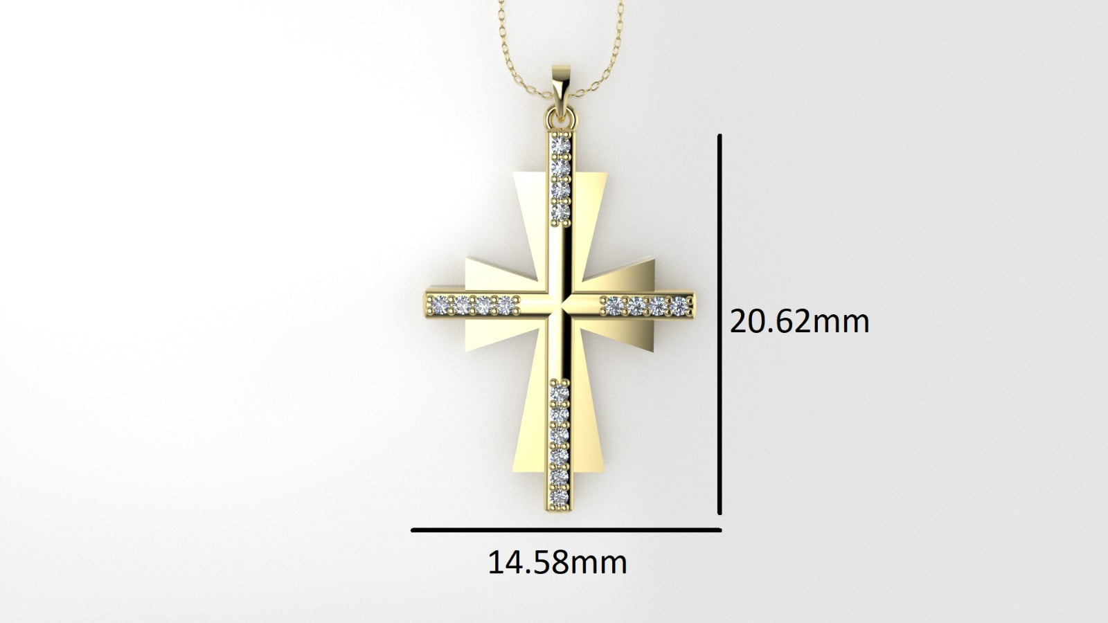 14K Pendant with 18 Diamond VS1, "Cross Double with Prongs", Only Pendant